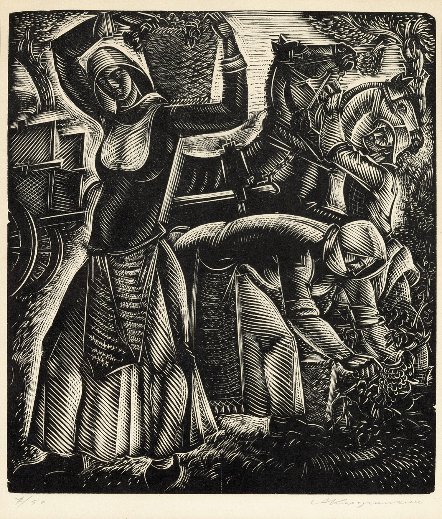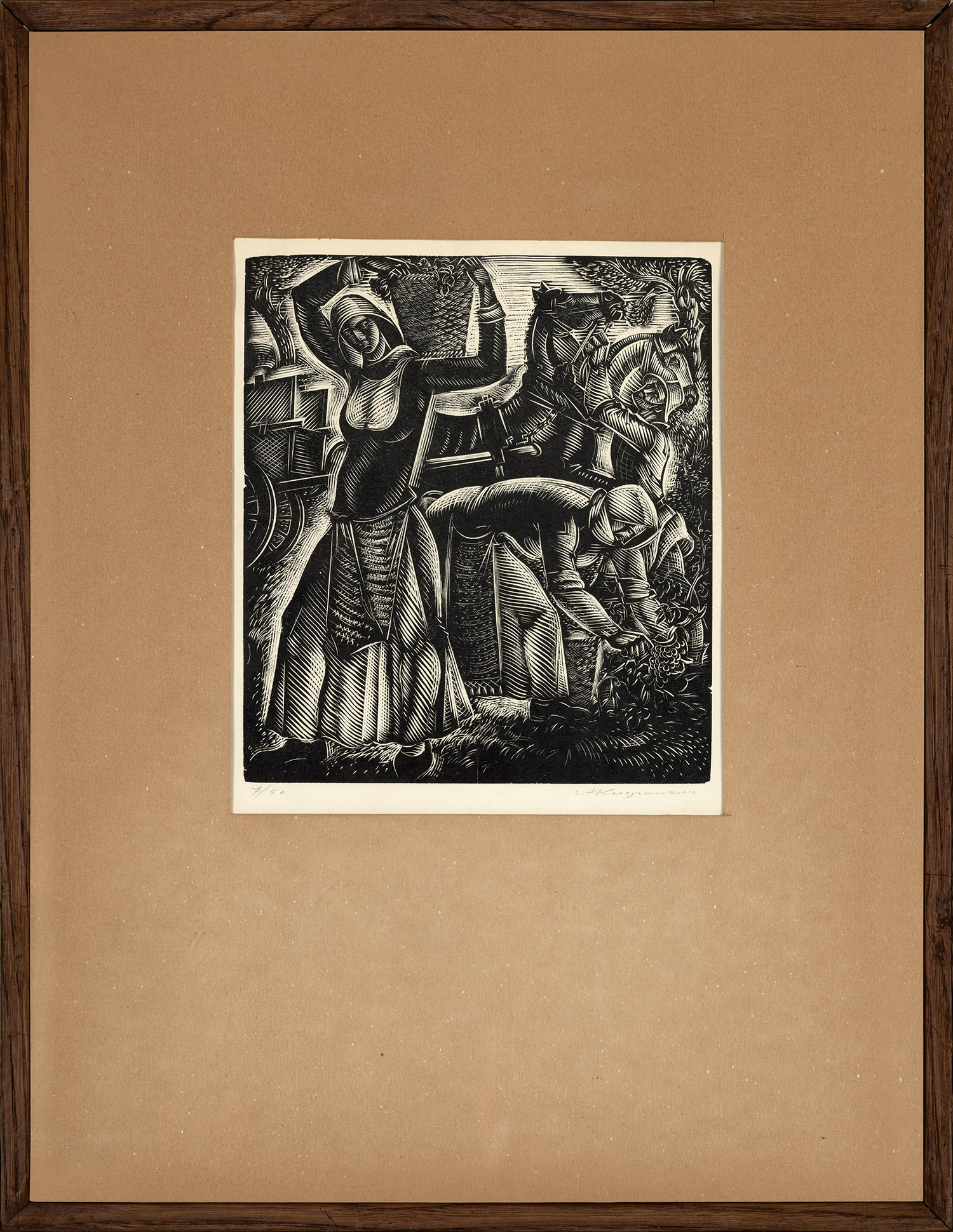 Ξυλογραφία σε όρθιο ξύλο, 204 x 180 mm. Έκδοση σε 50 αντίτυπα, αρίθμηση και υπογραφή στο κάτω περιθώριο με μολύβι. Σε κορνίζα.