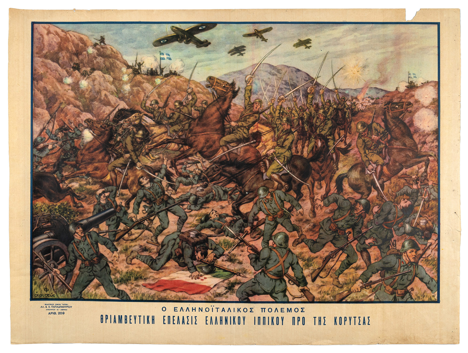 Ὁ ἑλληνοϊταλικός πόλεμος: Θριαμβευτική ἐπέλασις ἑλληνικοῦ ἱππικοῦ πρό τῆς Κορυτσᾶς.