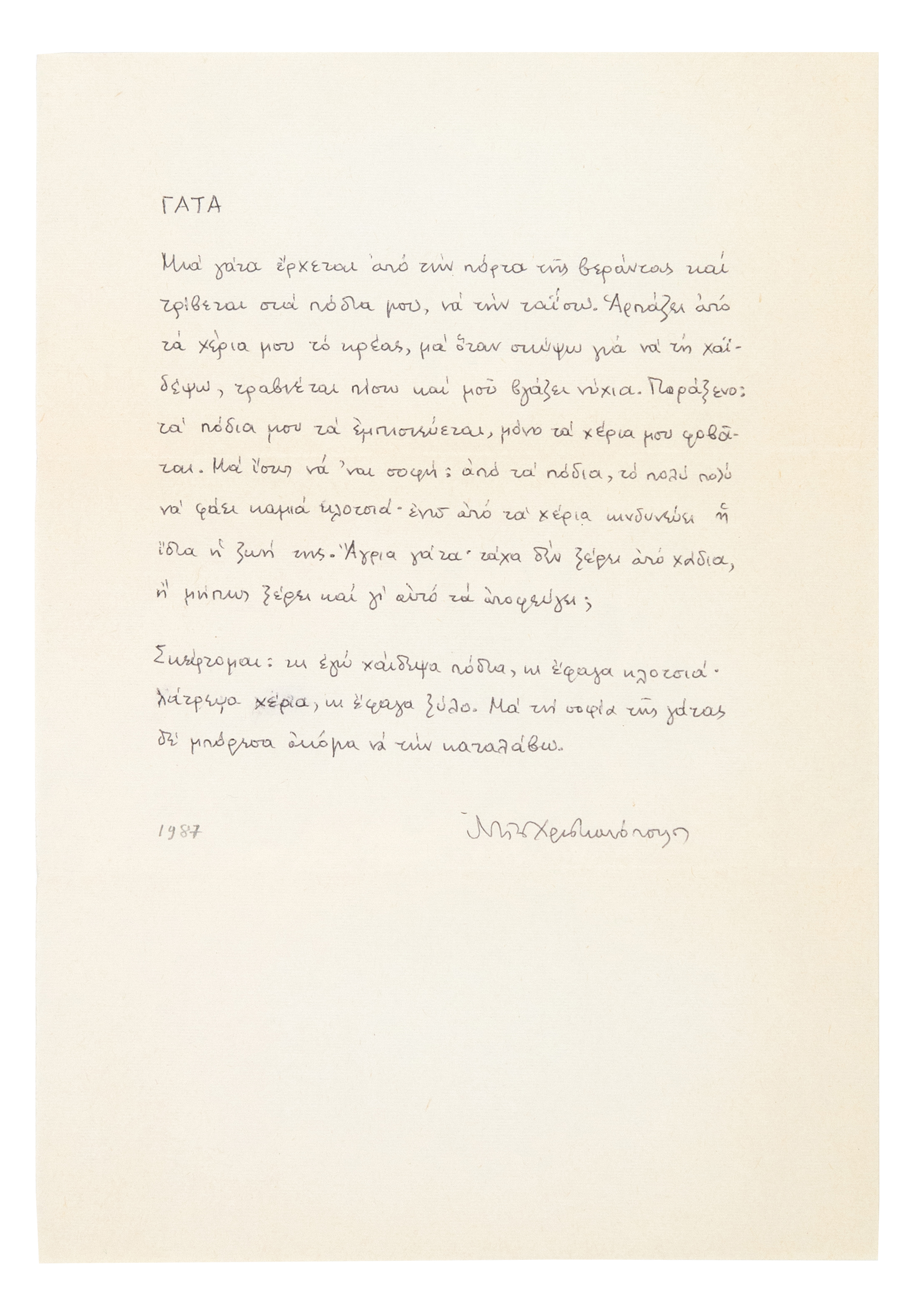 Αὐτόγραφο τοῦ ποιήματός του «Γάτα».