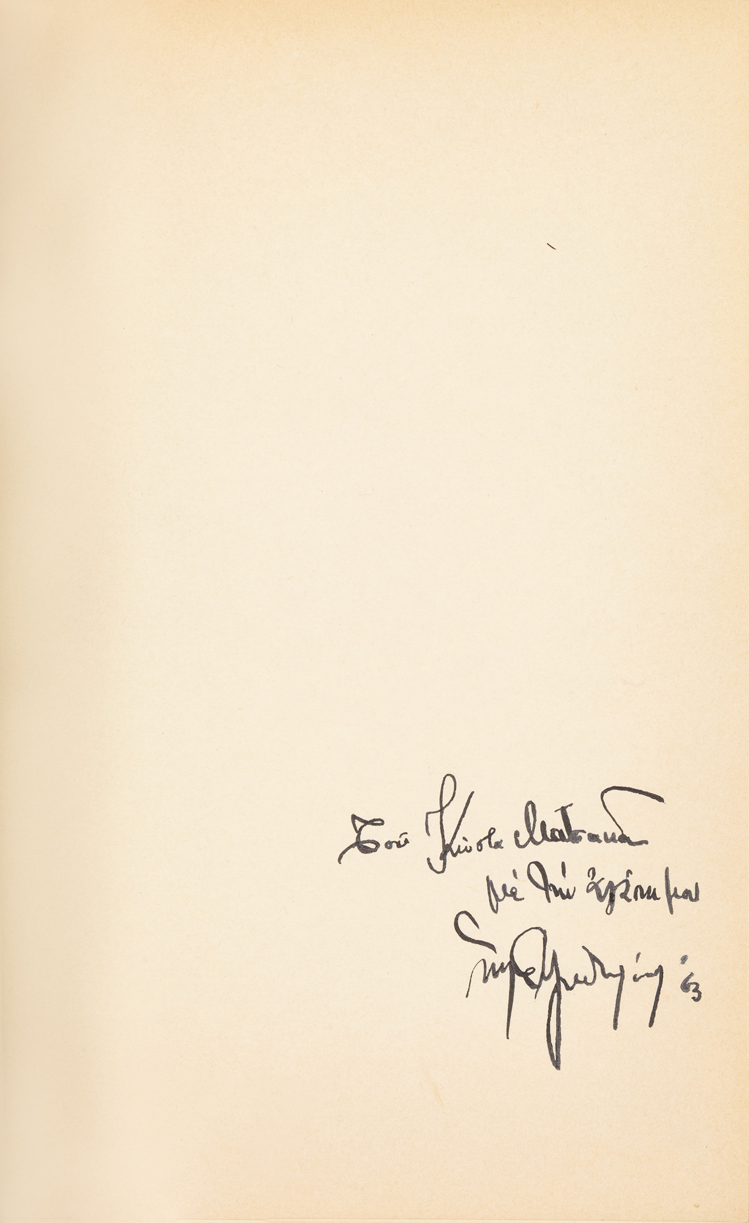 Τιμή εκτίμησης: € 150 - 200ΠΡΩΤΗ ΕΚΔΟΣΗ. 51 σ. Αντίτυπο με ιδιόχειρη αφιέρωση («Τοῦ Κώστα Ματσακᾶ / μέ τήν ἀγάπη μου / Μάνος Ἐλευθερίου ‘63». Αρχικά εξώφυλλα (εικονογραφημένο το πάνω). • Η ΠΡΩΤΗ ΠΟΙΗΤΙΚΗ ΣΥΛΛΟΓΗ ΤΟΥ Μ. ΕΛΕΥΘΕΡΙΟΥ.