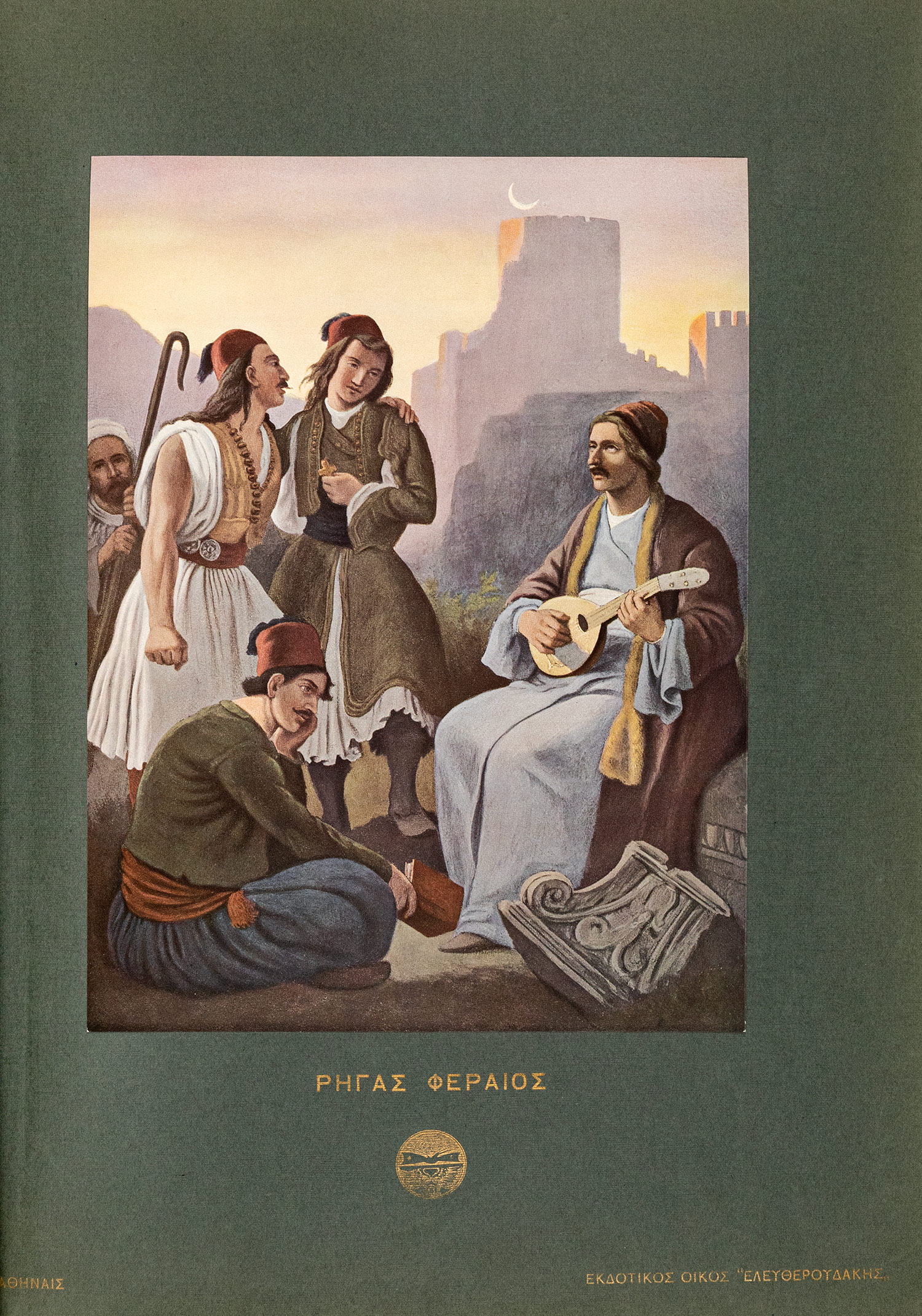 Τιμή εκτίμησης: € 300 - 400folio (450 x 335 mm). 40 έγχρωμες αναπαραγωγές επικολλημένες σε ισάριθμα φύλλα (τα 5 με την ένδειξη «Εκδοτικός Οίκος Ελευθερουδάκης», τα υπόλοιπα 35 με την ένδειξη «Ελληνική Εκδοτική Εταιρεία»), καθεμία πλην της πρώτης με επεξηγηματικό κείμενο σε χωριστό φύλλο, 3 φύλλα κειμένου στην αρχή (τίτλος, πρόλογος και κατάλογος εικόνων). Αρχικό εικονογραφημένο πανί του Ελευθερουδάκη (μικρό σχίσιμο στην κάτω ένωση).