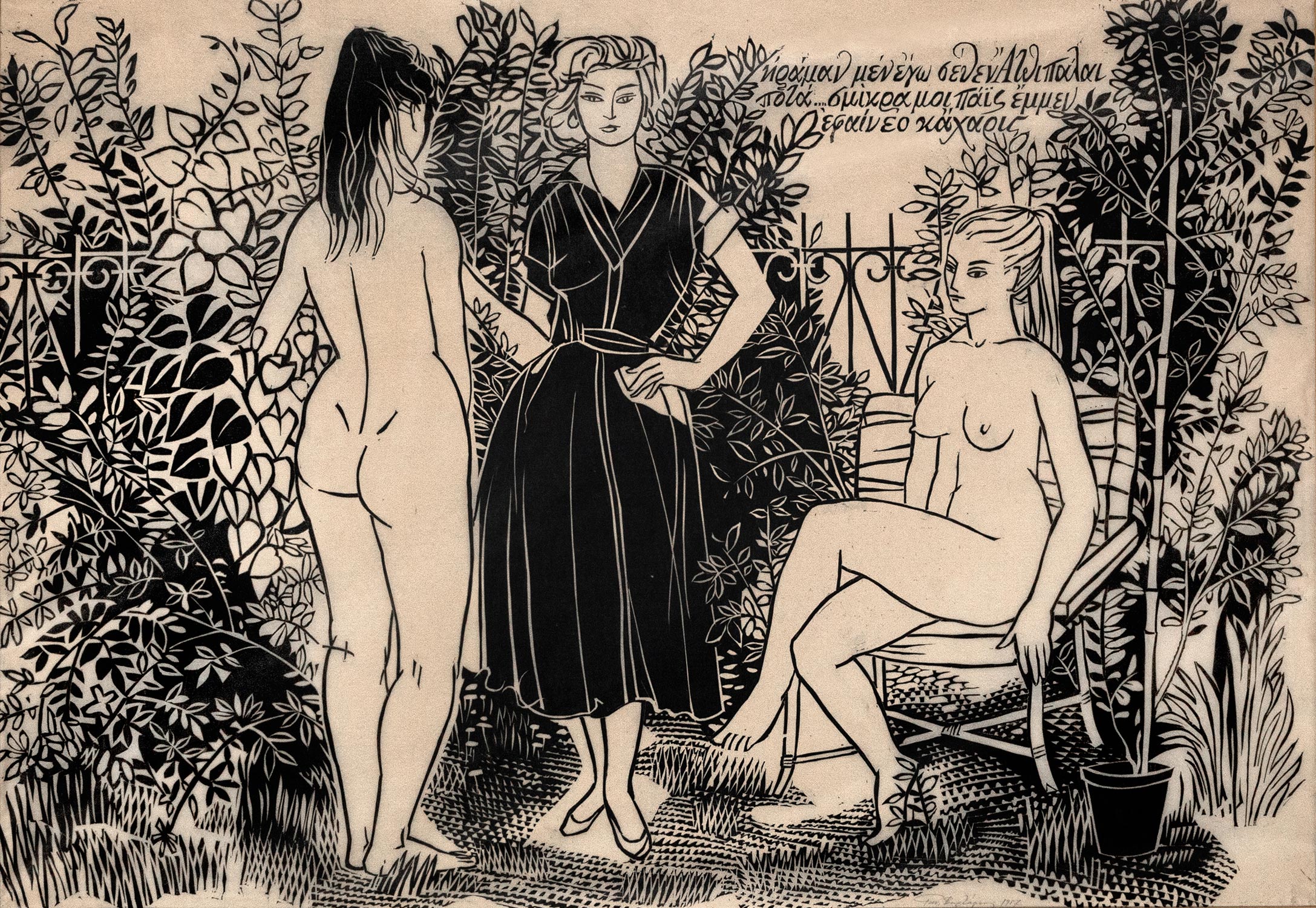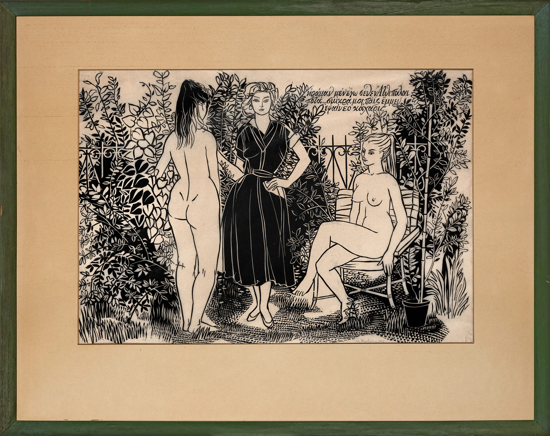 Ξυλογραφίασε πλάγιο ξύλο, 395 x 592 mm. Υπογραφή και χρονολογία κάτω δεξιά με μολύβι. Σε κορνίζα.