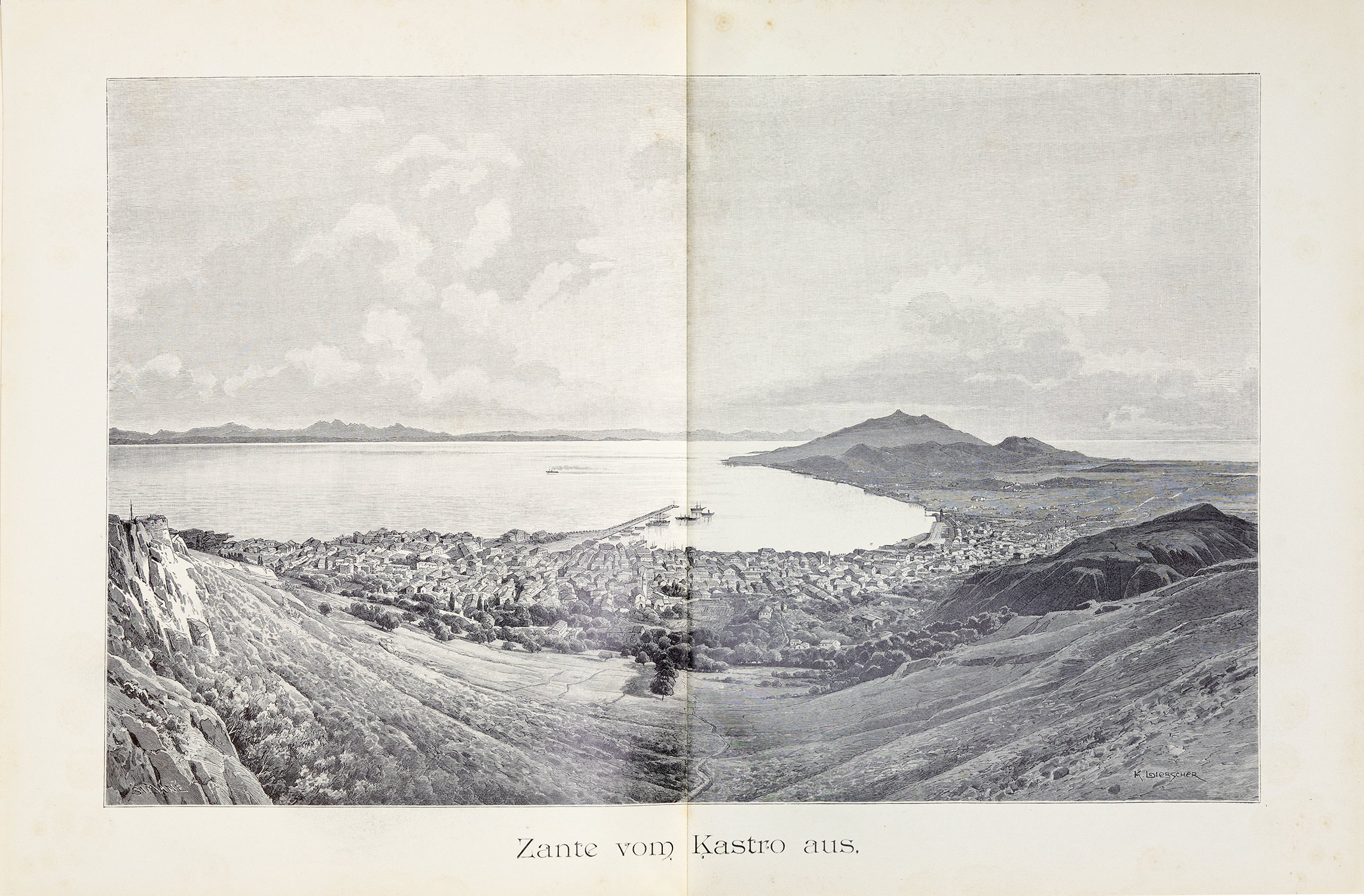 Τιμή εκτίμησης: € 1.000 - 1.5002 τόμοι, 4ο (324 x 250 mm.), XIV + 687 και IX + 449 σ. Πολυάριθμες εικόνες εντός κειμένου (πολλές ολοσέλιδες), μία δισέλιδη εκτός κειμένου και 6 χρωμολιθόγραφοι πίνακες με χάρτες και τοπογραφικά (οι 4 αναδιπλούμενοι), λυτός αναδιπλούμενος στοιχειοθετημένος πίνακας τοποθετημένος σε θήκη στο εσωτερικό του κάτω καλύμματος του Β´ μέρους («Tabelle der Entfernungen der Ortshaften von der Stadt und untereinander»). Αρχικό εικονογραφημένο πανί (ελαφρά λερωμένο). (2)