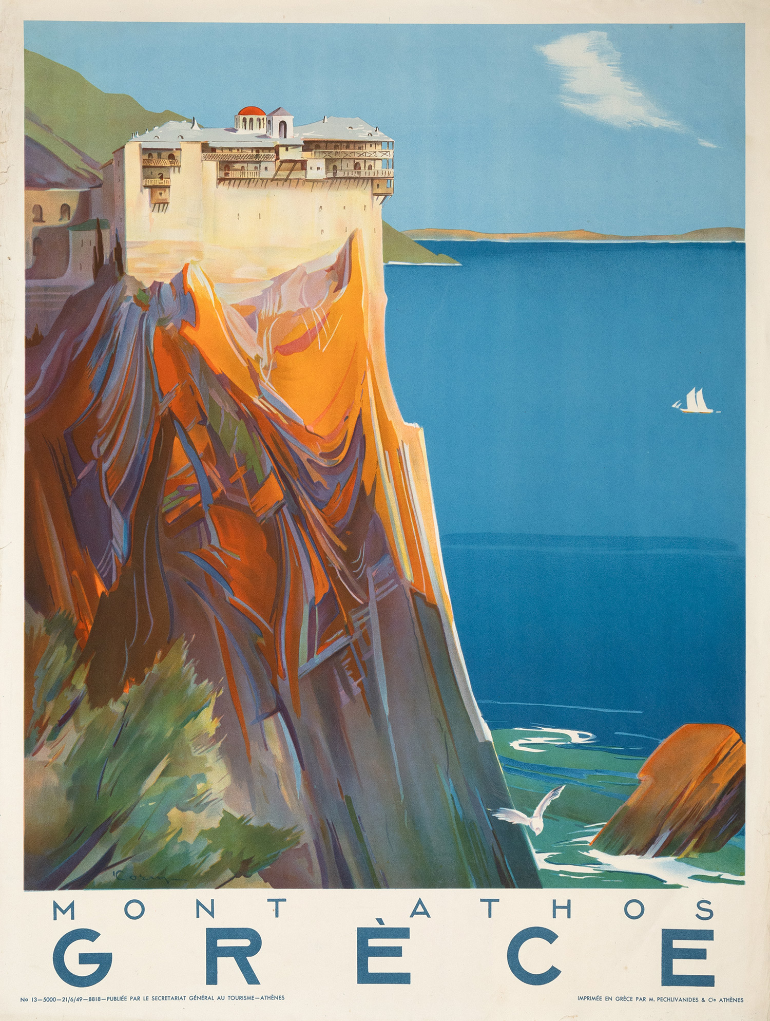 Χρωμολιθόγραφη αφίσα, 797 x 600 mm. (λίγες μικρές φθορές στα πλευρικά περιθώρια). Έκδοση της Γεν. Γραμματείας Τουρισμού. Πρβ. Καραχρήστος 301.