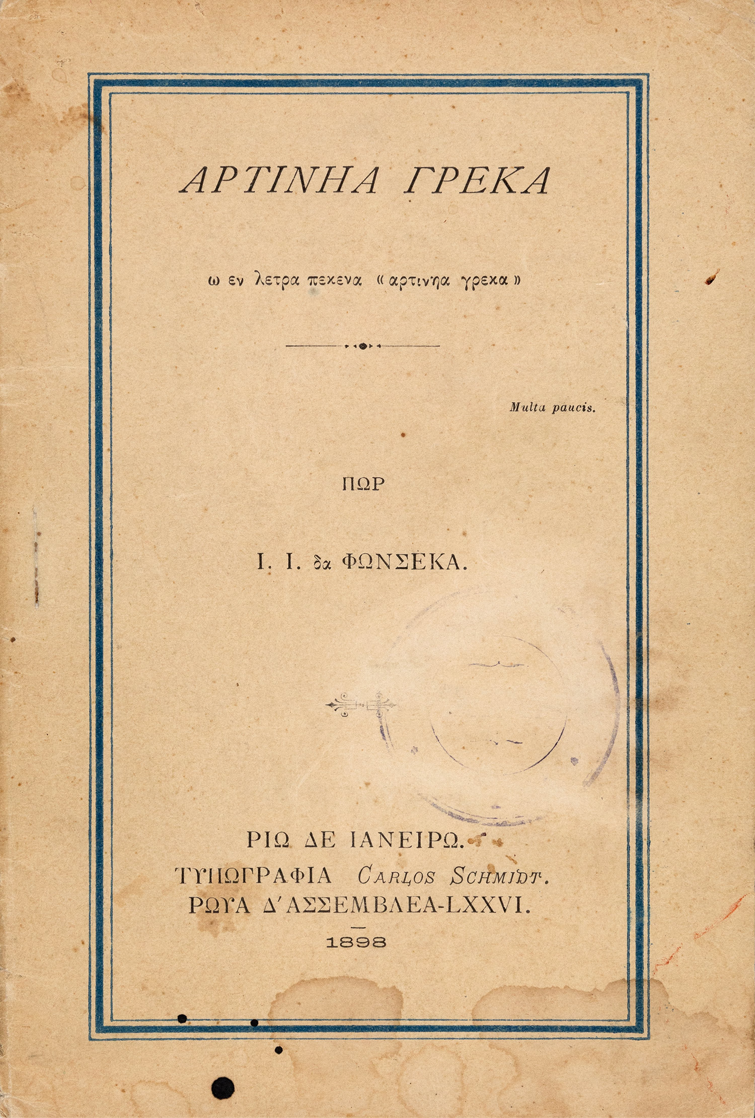 ΑΡΤΙΝΗΑ ΓΡΕΚΑ, ω εν λετρα πεκενα «αρτινηα γρεκα». Πωρ Ι. Ι. δα Φωνσέκα.