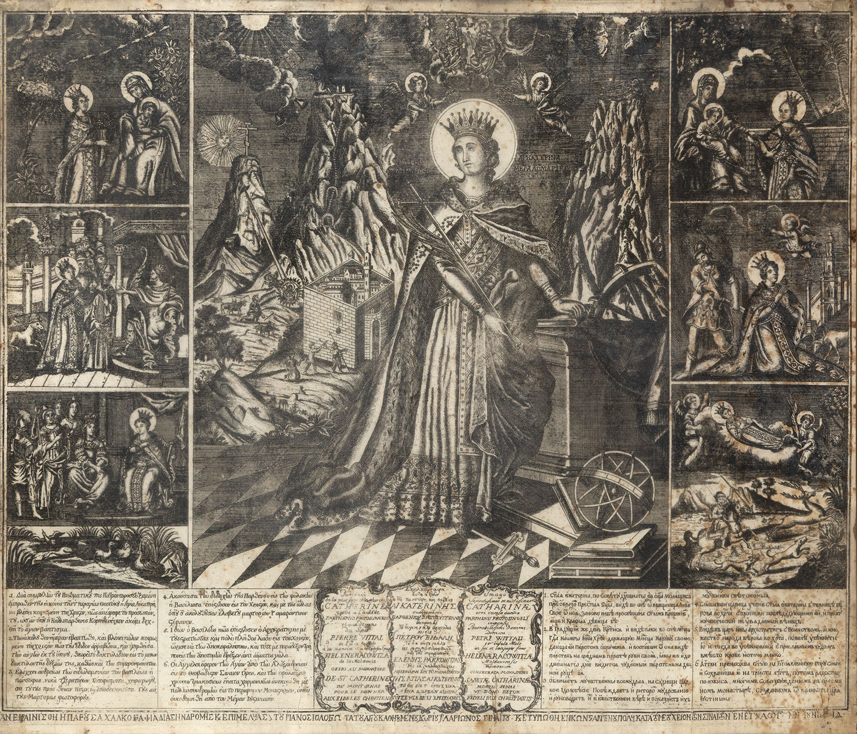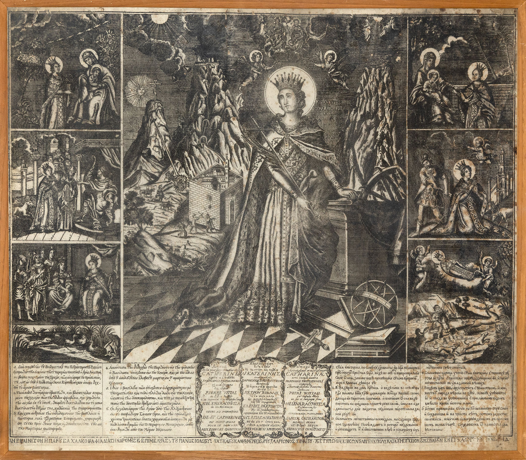 ΧΑΡΤΙΝΗ ΕΙΚΟΝΑ — Ἡ Ἁγία Αἰκατερίνη μέ σκηνές τοῦ βίου της.