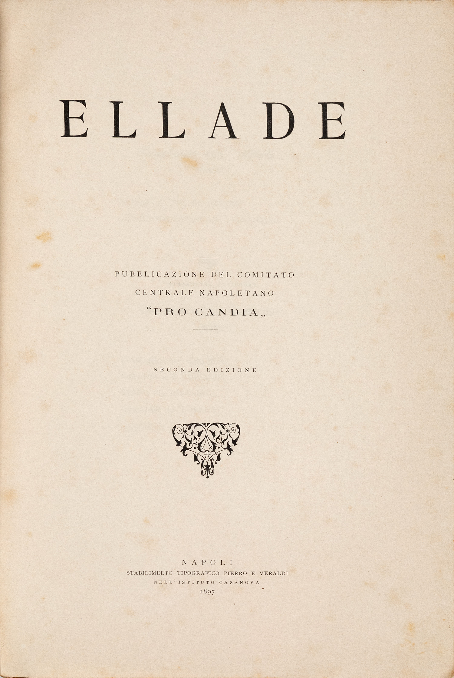 ΚΡΗΤΙΚΗ ΕΠΑΝΑΣΤΑΣΗ 1897 — Ellade, publicazione del comitato centrale napoletano “Pro Candia”, seconda edizione, [στο εξώφυλλο:] A beneficio dei profughi Candioti.