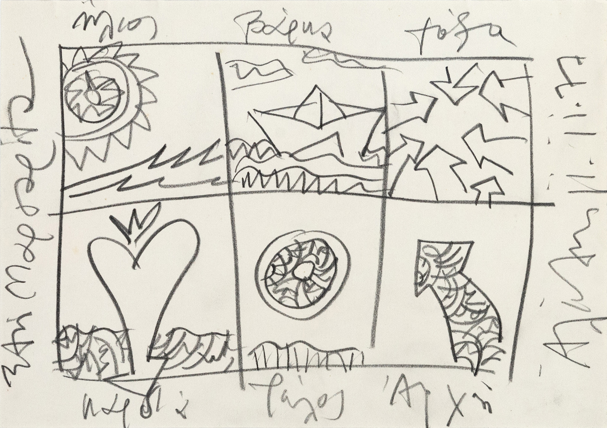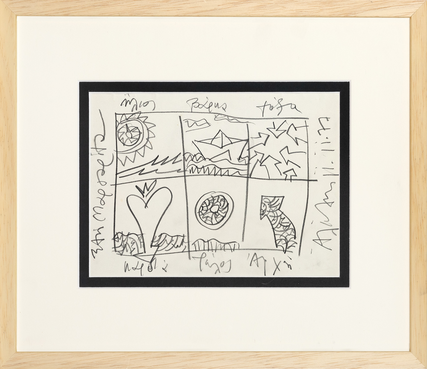 Μολύβι σε χαρτί, 160 x 225 mm. Αφιέρωση στην αριστερή πλευρά («Στή Μαργαρίτα»), υπογραφή και χρονολογία στη δεξιά: «Ἀλέξης 11.11.77». Σε κορνίζα. • Το έργο συνοδεύεται από πιστοποιητικό γνησιότητας.