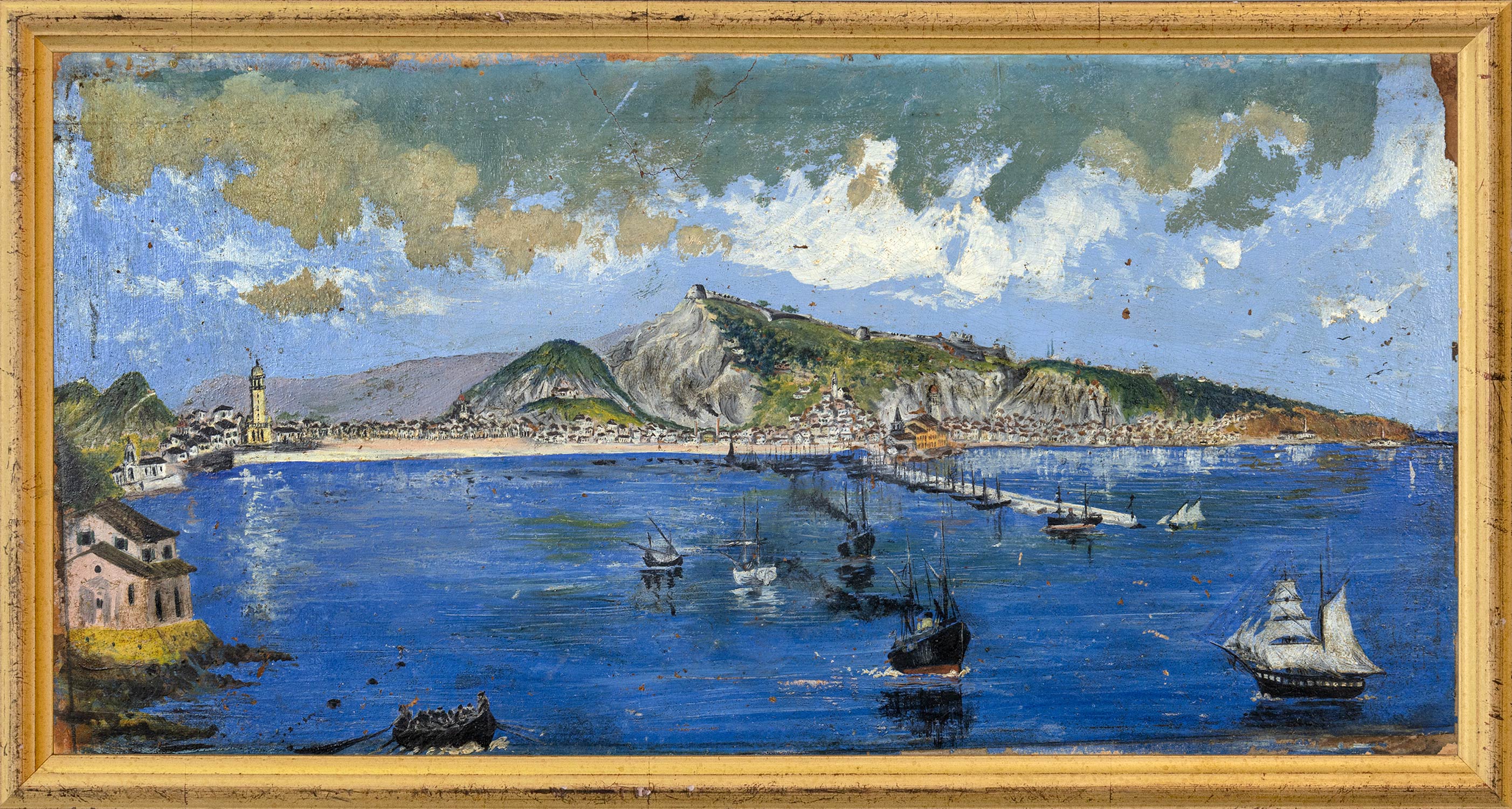 Λάδι σε κόντρα πλακέ, 225 x 455 mm. Σε κορνίζα.