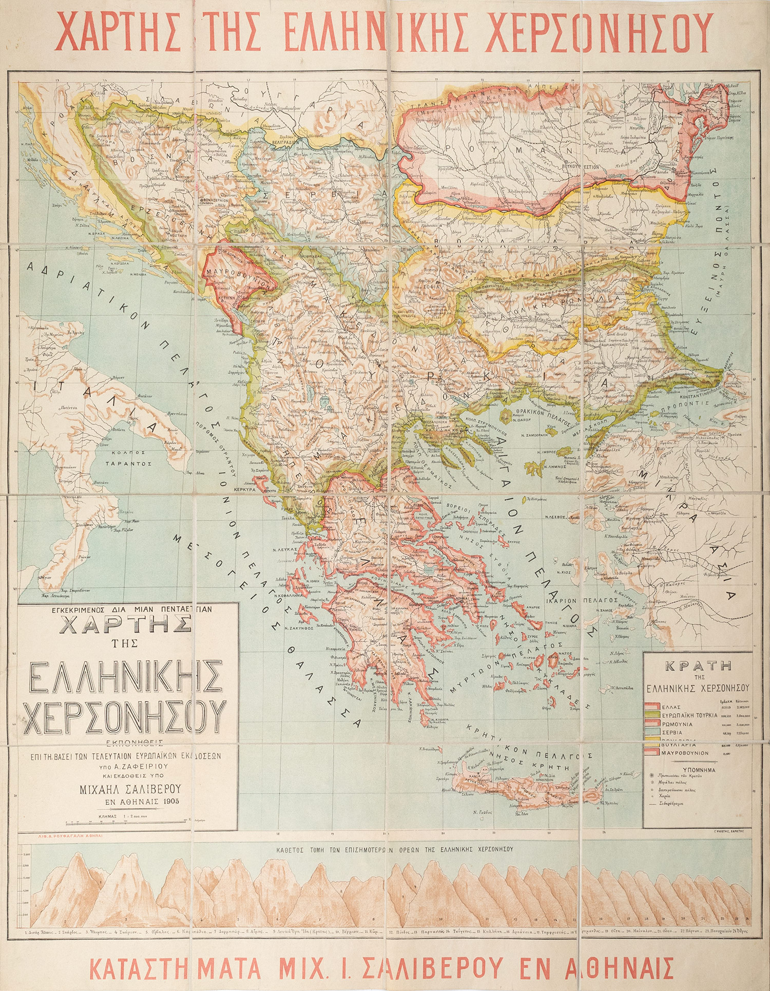 Ἐγκεκριμένος διὰ μίαν πενταετίαν Χάρτης τῆς Ἑλληνικῆς χερσονήσου. Ἐκπονηθεὶς ἐπὶ τῇ βάσει τῶν τελευταίων εὐρωπαϊκῶν ἐκδόσεων ὑπὸ Α. Ζαφειρίου.