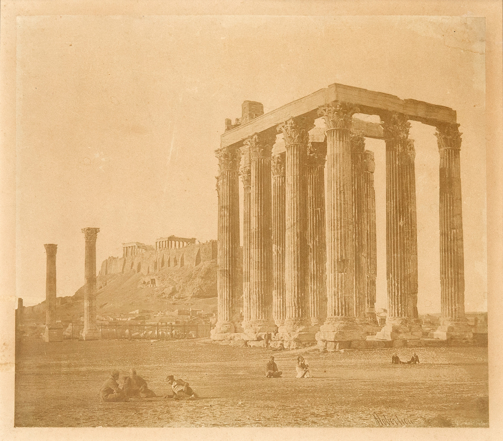 Τιμή εκτίμησης: € 800 - 1.200Τύπωμα άλατος, 268 x 303 mm. Υπογεγραμμένο στην εικόνα με μελάνι. Σε πασπαρτού. • Η λήψη αυτή δεν υπάρχει στο λεύκωμα Ρ. Ανδρεάδη του Μουσείου Μπενάκη. Βλ. Φ. Κωνσταντίνου & Φ.-Μ. Τσιγκάκου, Φωτογραφίες του James Robertson, «Αθήνα και ελληνικές αρχαιότητες», 1853-1864, από το Φωτογραφικό Αρχείο του Μουσείου Μπενάκη, Αθήνα 1998.