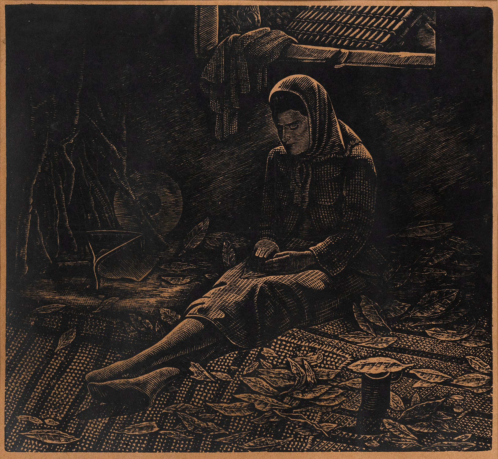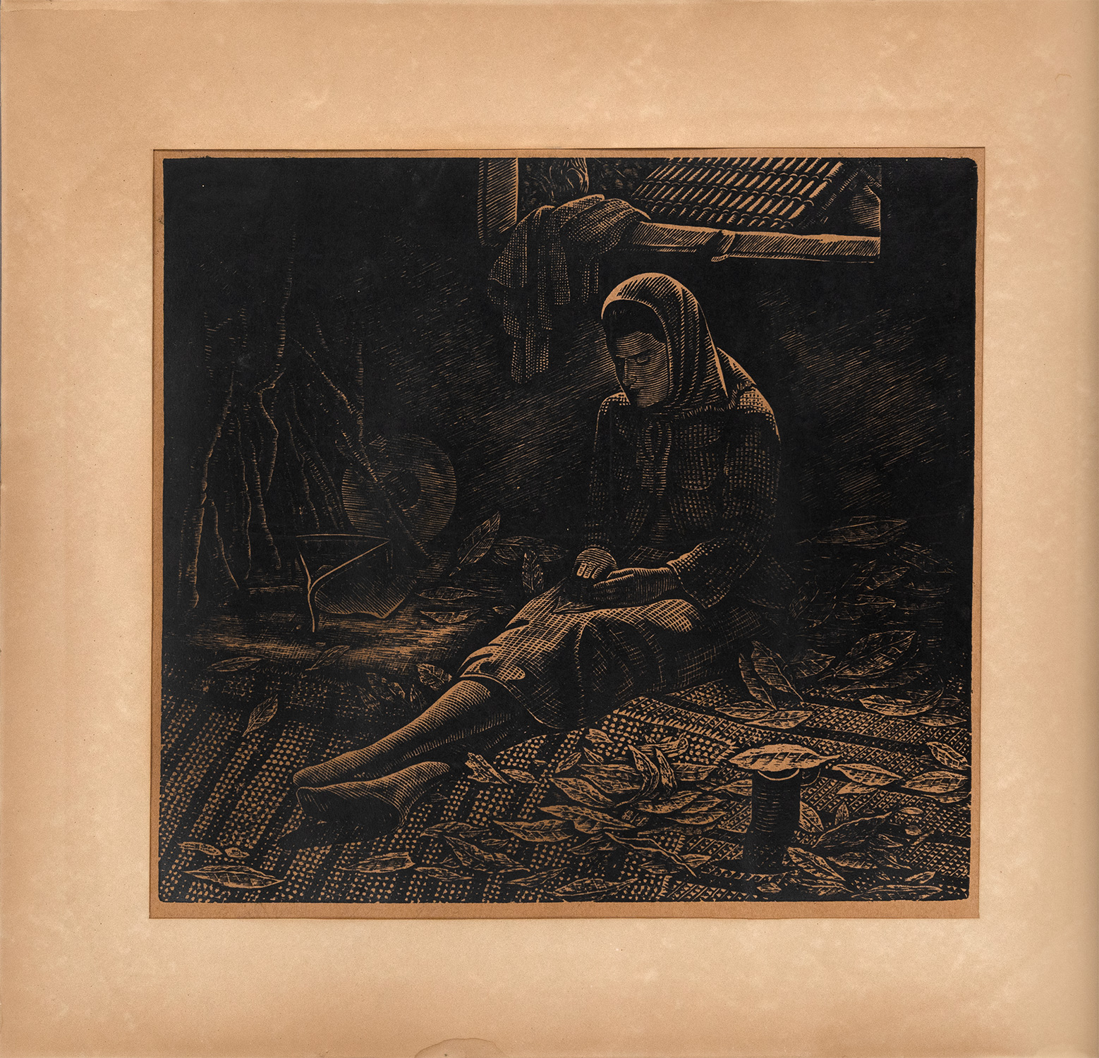 Ξυλογραφία σε πλάγιο ξύλο, 396 x 430 mm. Έκδοση σε 12 αντίτυπα, υπογραφή, αρίθμηση και χρονολογία στο κάτω περιθώριο με μολύβι. Σε κορνίζα.