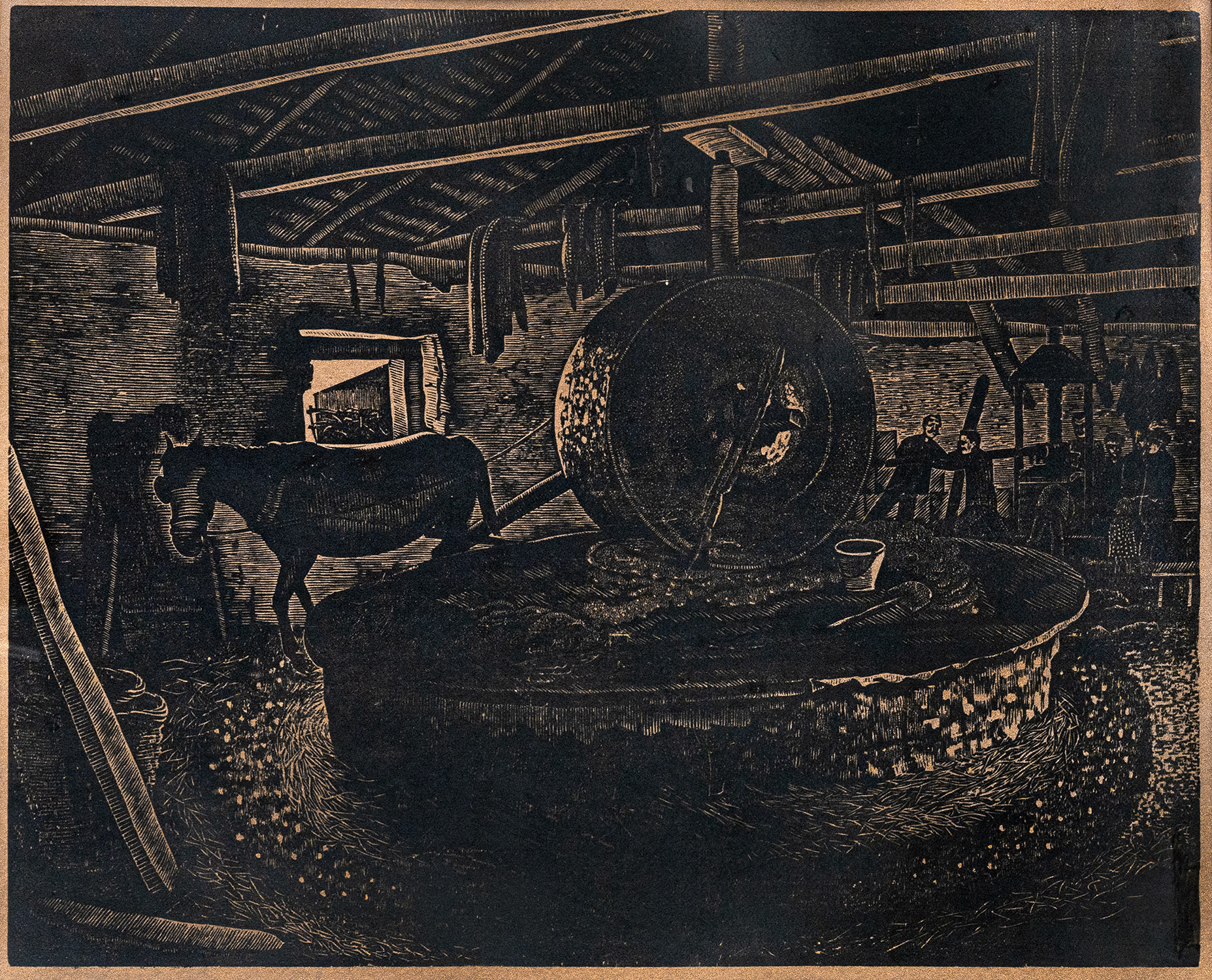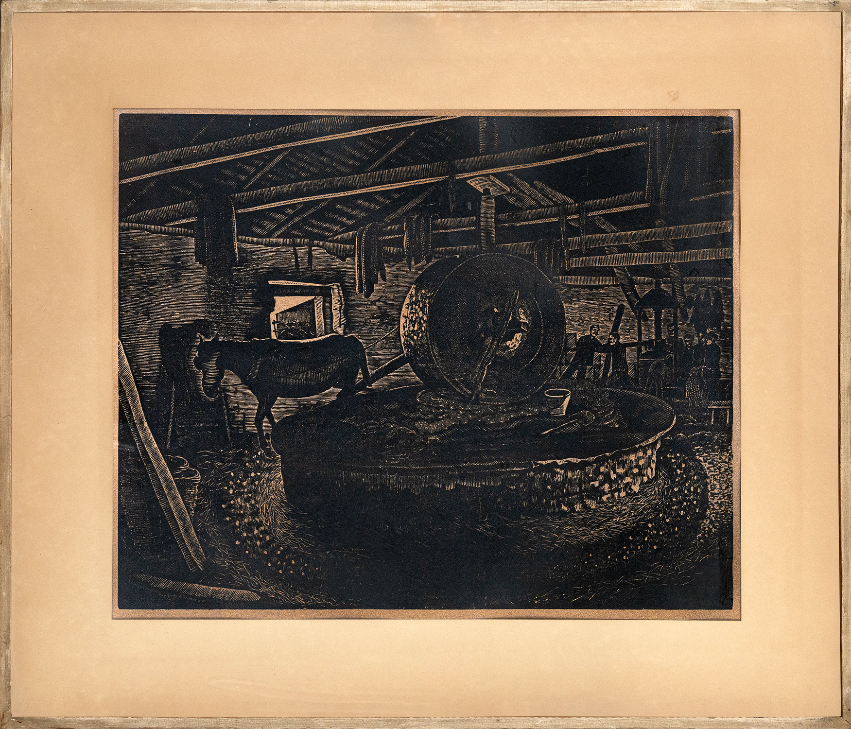 Ξυλογραφία σε πλάγιο ξύλο, 397 x 485 mm. Έκδοση σε 12 αντίτυπα, υπογραφή, αρίθμηση και χρονολογία στο κάτω περιθώριο με μολύβι. Σε κορνίζα.