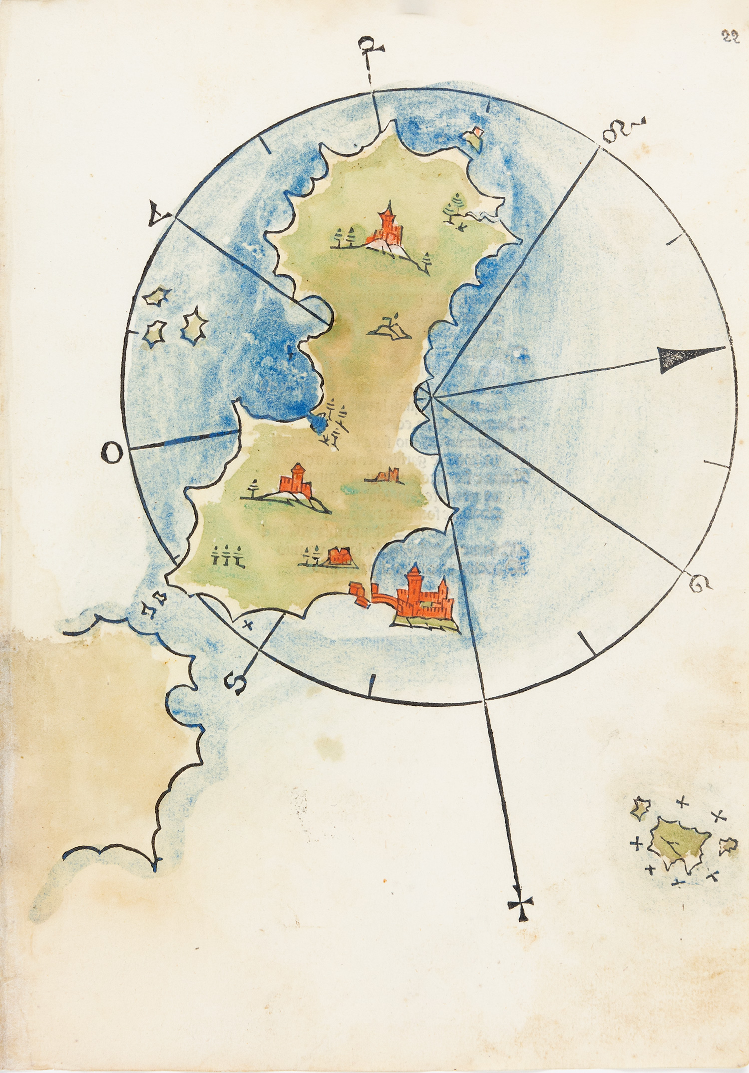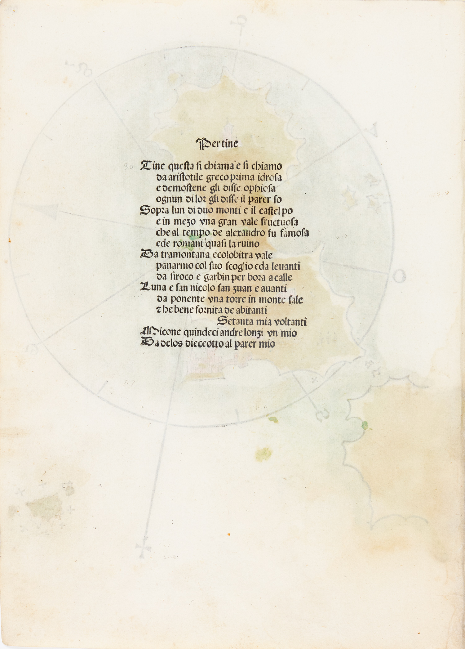 Τιμή εκτίμησης: € 6.000 - 8.000Ξυλόγραφος χάρτης της Άνδρου, επιχρωματισμένος με το χέρι, 228 x 164 mm. Στην πάνω δεξιά γωνία χειρόγραφη σημείωση: «22», στην πίσω όψη το σονέτο που αναφέρεται στην Τήνο. Zacharakis 3381. • Αυτός και οι επόμενοι 3 χάρτες προέρχονται από το ΕΞΑΙΡΕΤΙΚΑ ΣΠΑΝΙΟ Isolario του Bartolomeo, την πρώτη συλλογή έντυπων ναυτικών χαρτών που εκδόθηκε ποτέ.