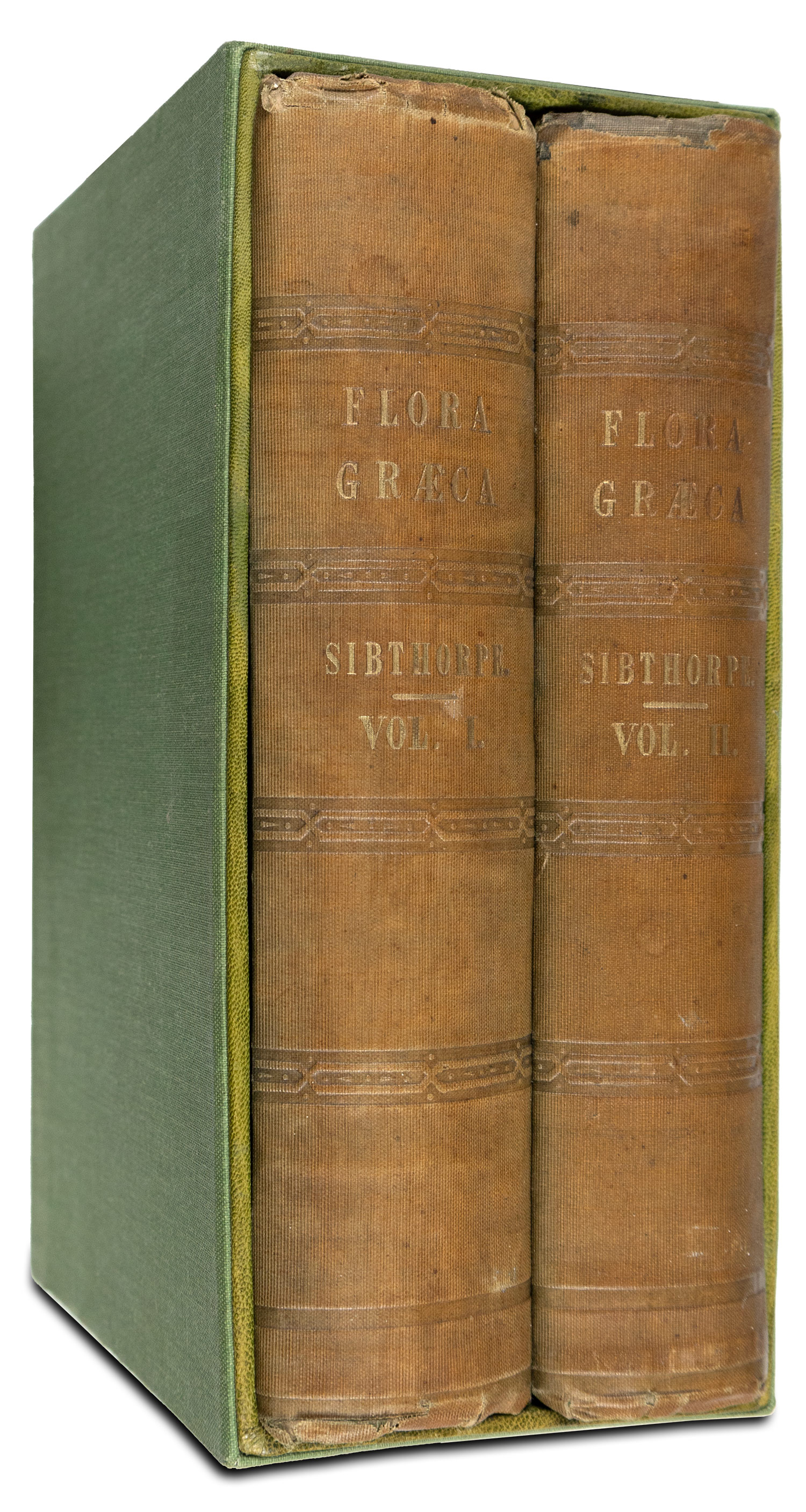 Τιμή εκτίμησης: € 2.000 - 3.000ΠΡΩΤΗ ΕΚΔΟΣΗ. 8ο (235 x 145 mm.), xvi + 442 και 421 σ. (ελαφρά οξειδωμένο αντίτυπο). Αρχικό πανί (με εμπίεστη διακόσμηση, ξεθωριασμένη η ράχη), θήκη. (2) • Πρόκειται για το πρώτο έργο του Άγγλου βοτανολόγου John Sibthorp, με πάνω από 2.500 αναλυτικές καταχωρήσεις ελληνικών φυτών, το οποίο αποτελεί πρόδρομο του δεύτερου έργου του, μνημείου για την ελληνική χλωρίδα, Flora græca: sive plantarum rariorum historia quas in provinciis aut insulis græciæ legit, investigavit, et depingi curavit, Johannes Sibthorp, M. D. (Λονδίνο 1806-1840). Βλ. τον λαχνό 113 της δημοπρασίας μας της 29ης Απριλίου 2025. • ΠΟΛΥ ΣΠΑΝΙΟ.