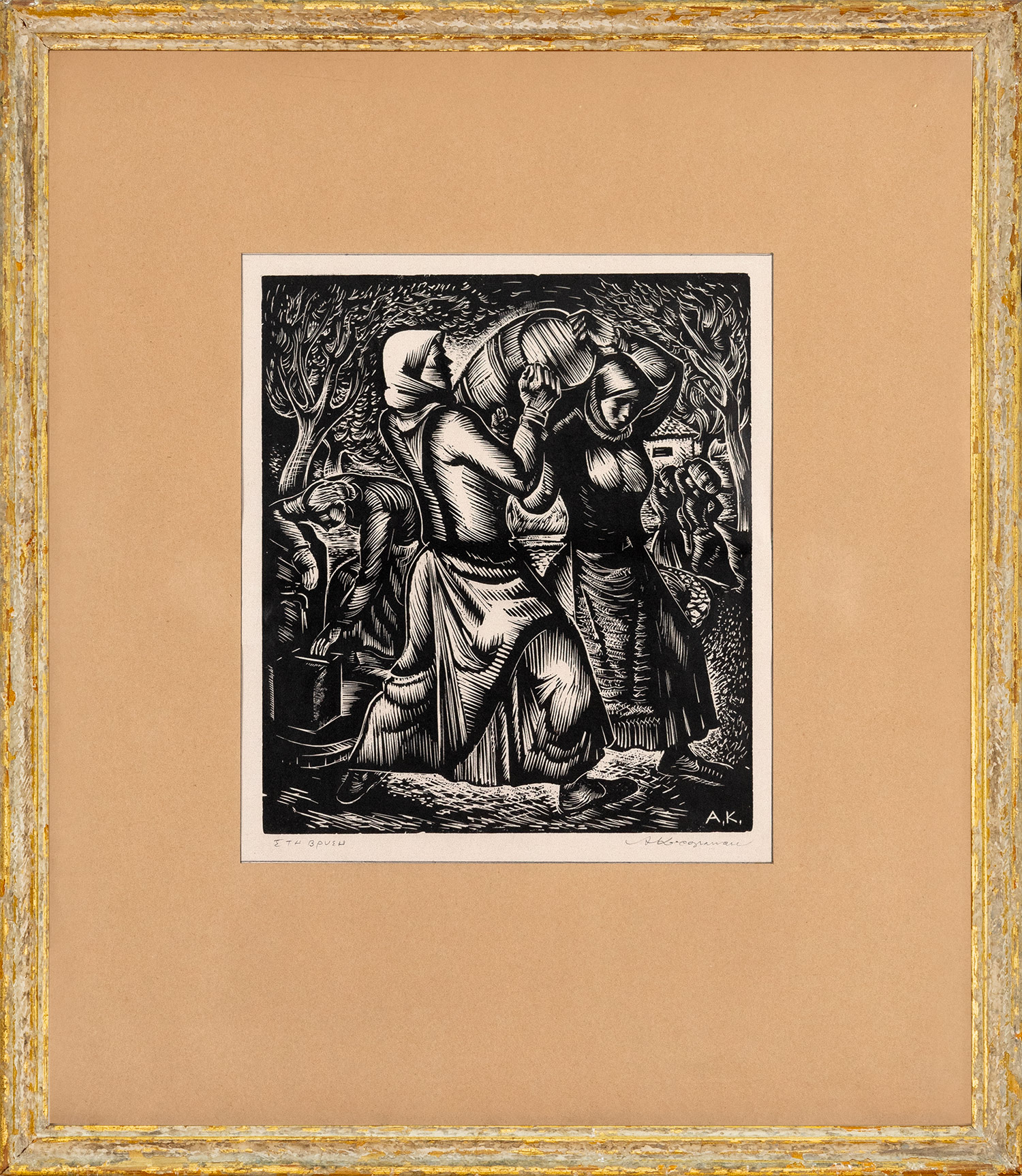 Τιμή εκτίμησης: € 400 - 600Ξυλογραφία σε όρθιο ξύλο, 205 x 180 mm. Τίτλος και υπογραφή στο κάτω περιθώριο με μολύβι, υπογραφή με αρχικά στην πλάκα. Οράτη & Στυλιανίδη, σ. 57. Βλ. Ἑλληνική χαρακτική, [κατάλ. της Α´ Πανελ. Έκθεσης Χαρακτικής], Αθήνα 1938, αρ. 131 (εικονίζεται). Σε κορνίζα.