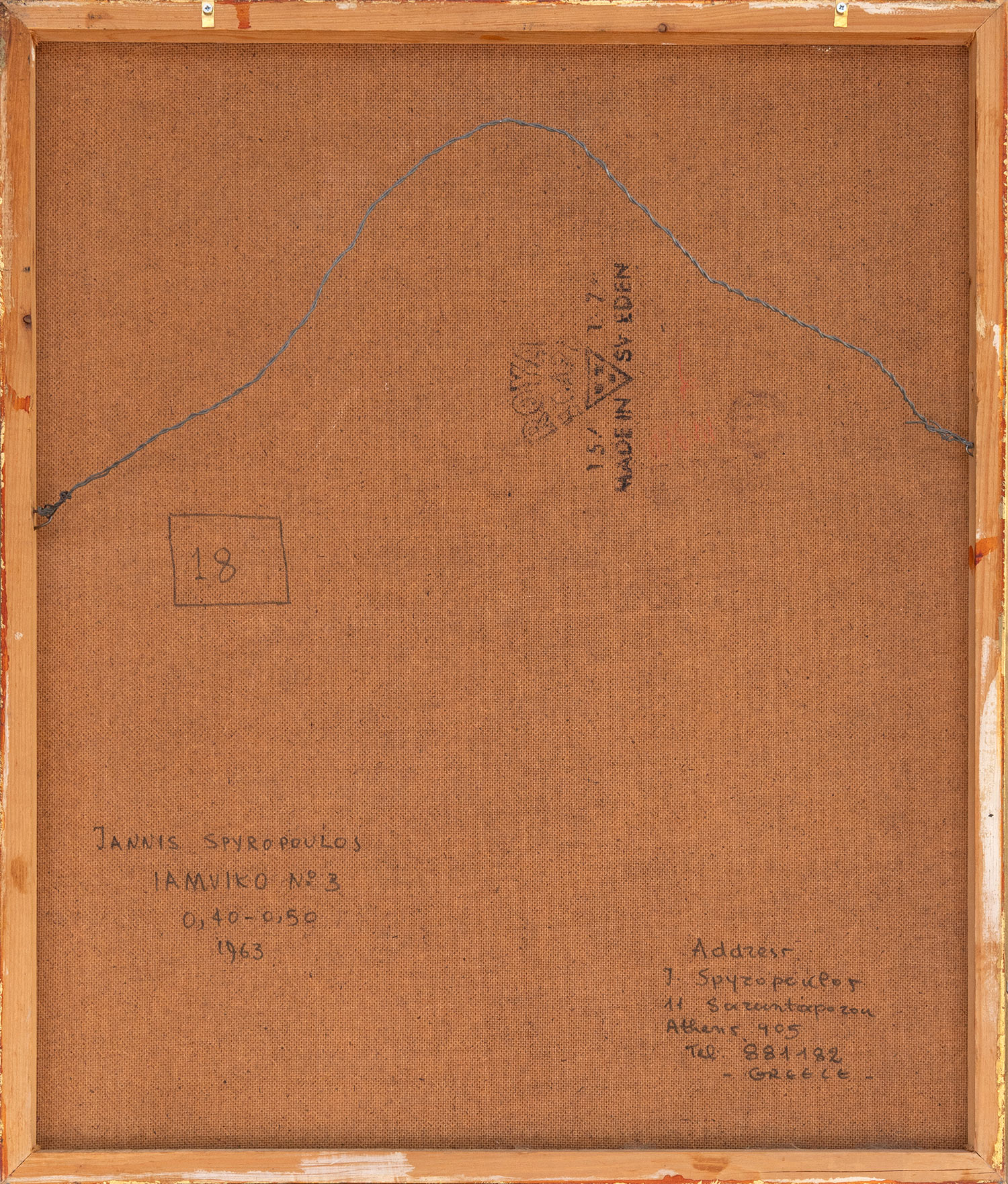 Jannis Spyropoulos, Palais de Beaux-Arts, Bruxelles, 12 – 24 Νοεμβρίου 1964, αρ. 18.