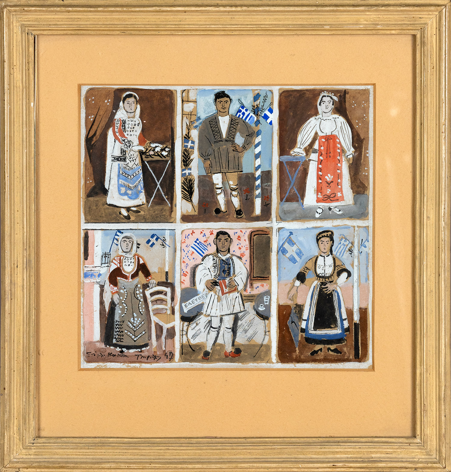 υπογεγραμμένο και χρονολογημένο κάτω αριστερά: Τσαρούχης 47 με αφιέρωση του καλλιτέχνη στον Κόκκα κάτω αριστερά