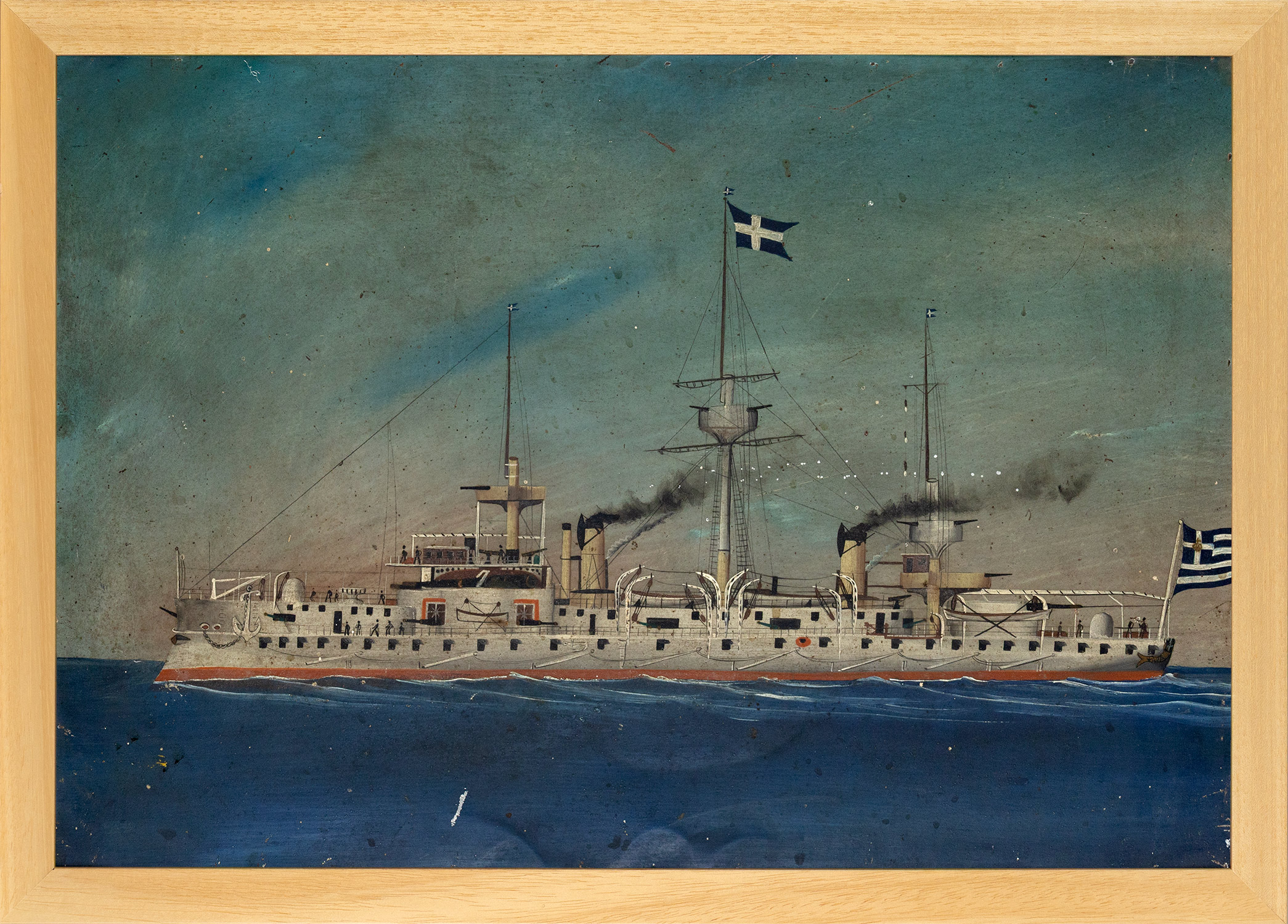 Τιμή εκτίμησης: € 1.500 - 2.000Μήκος 103 μ. Μηχανές 6700 ίππων, ταχ. 17,5 κόμβοι. Έφεραν 3 πυροβόλα των 27 εκατ., 5 των 15 εκατ., 1 των 10 εκατ. και