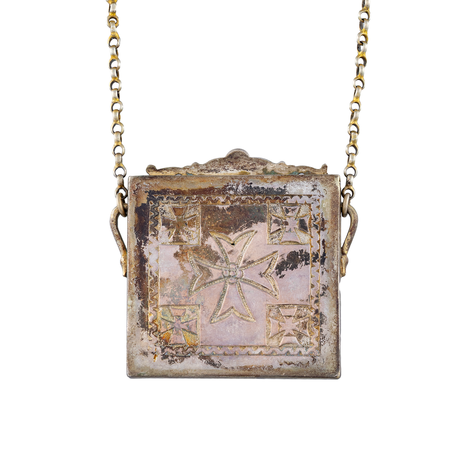 Ασημένιο επίχρυσο φυλακτό με αλυσίδα (19ος αιώνας)