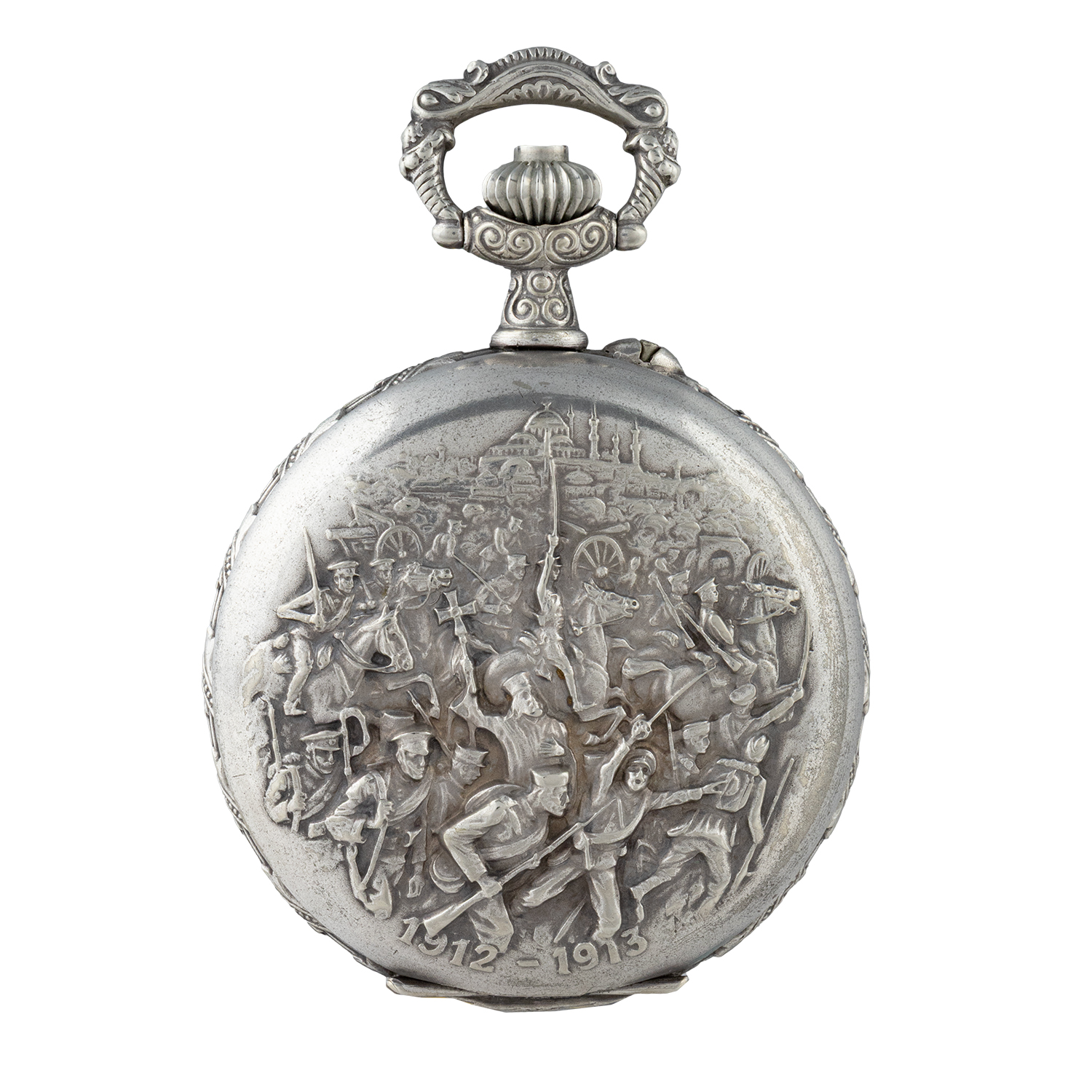 Ασημένιο ρολόι τσέπης αναμνηστικό των Βαλκανικών Πολέμων 1912-13, δωρηθέν στον τότε Αρχιστράτηγο και Διάδοχο Κωνσταντίνο.