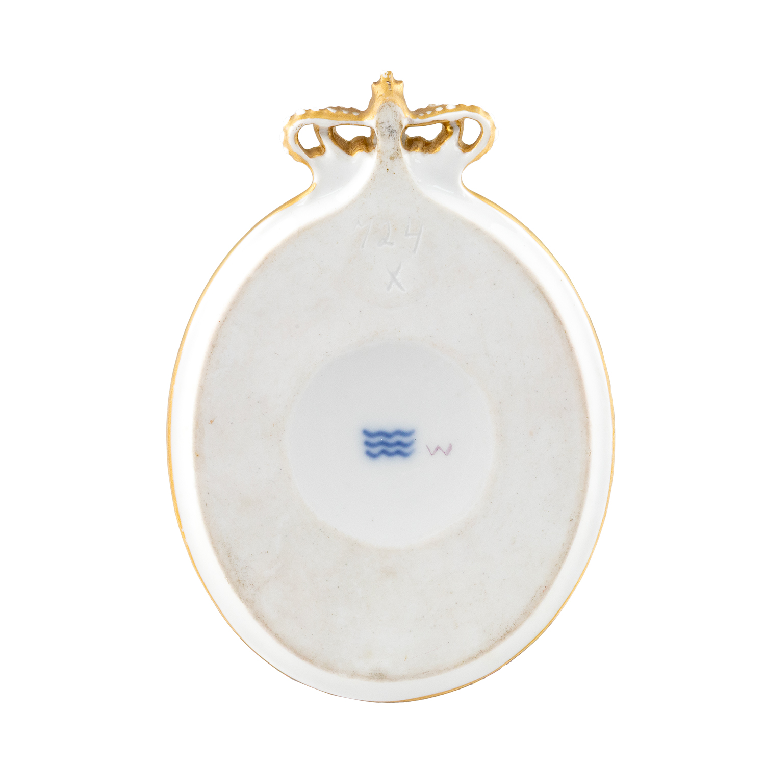 Τιμή εκτίμησης: € 1.000 - 1.500Στην πίσω πλευρά τα τρία κυματιστά μπλε κύματα σήμα κατατεθέν της Royal Copenhagen και το γράμμα W (πιθανόν η υπογραφή του ζωγράφου).