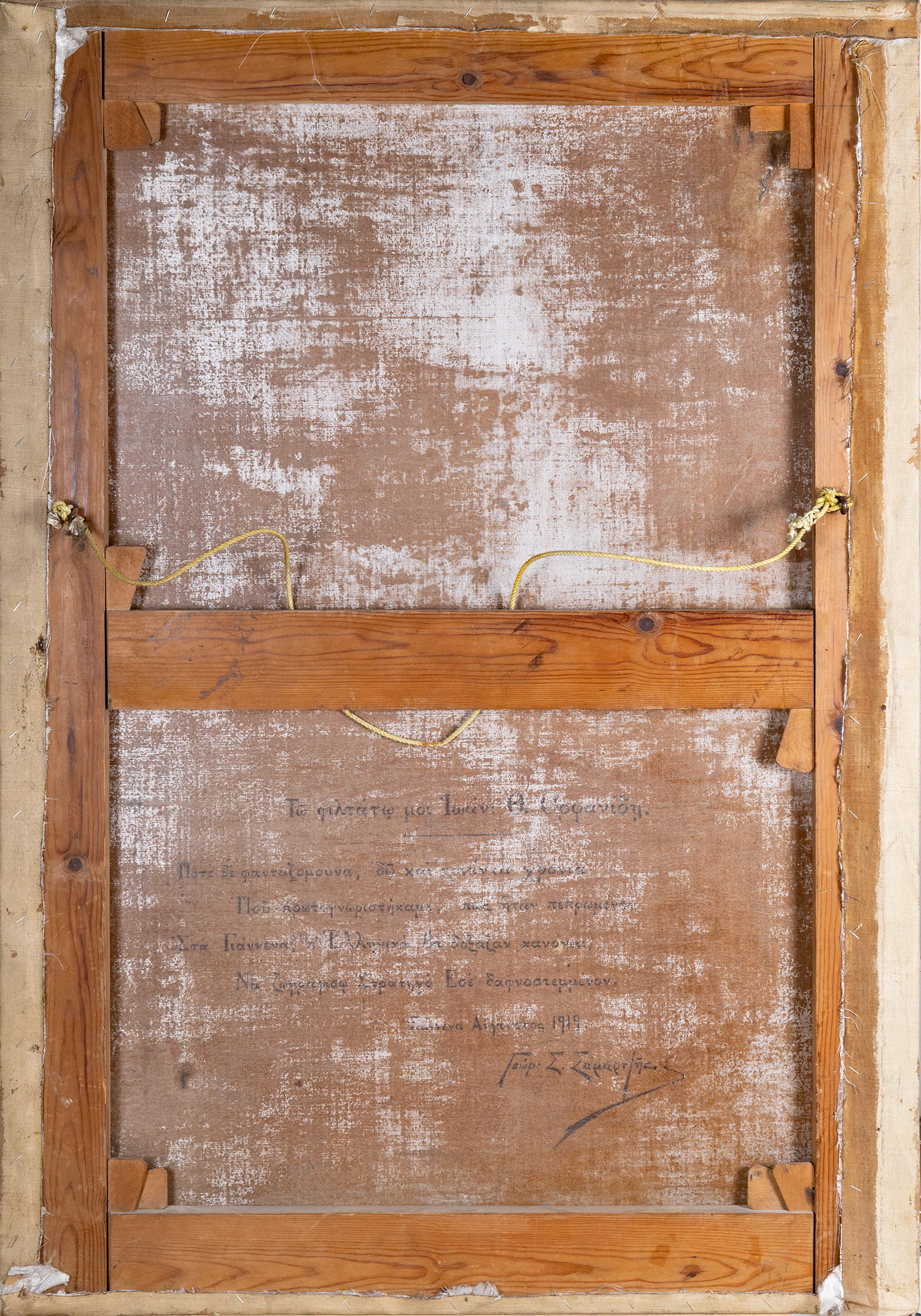 Τιμή εκτίμησης: € 3.000 - 4.000υπογεγραμμένο και χρονολογημένο κάτω δεξιά: Γ. Σ. Σαμαρτζής / Γιάννενα 1919 με αφιέρωση του καλλιτέχνη κάτω δεξιά και στην πίσω όψη