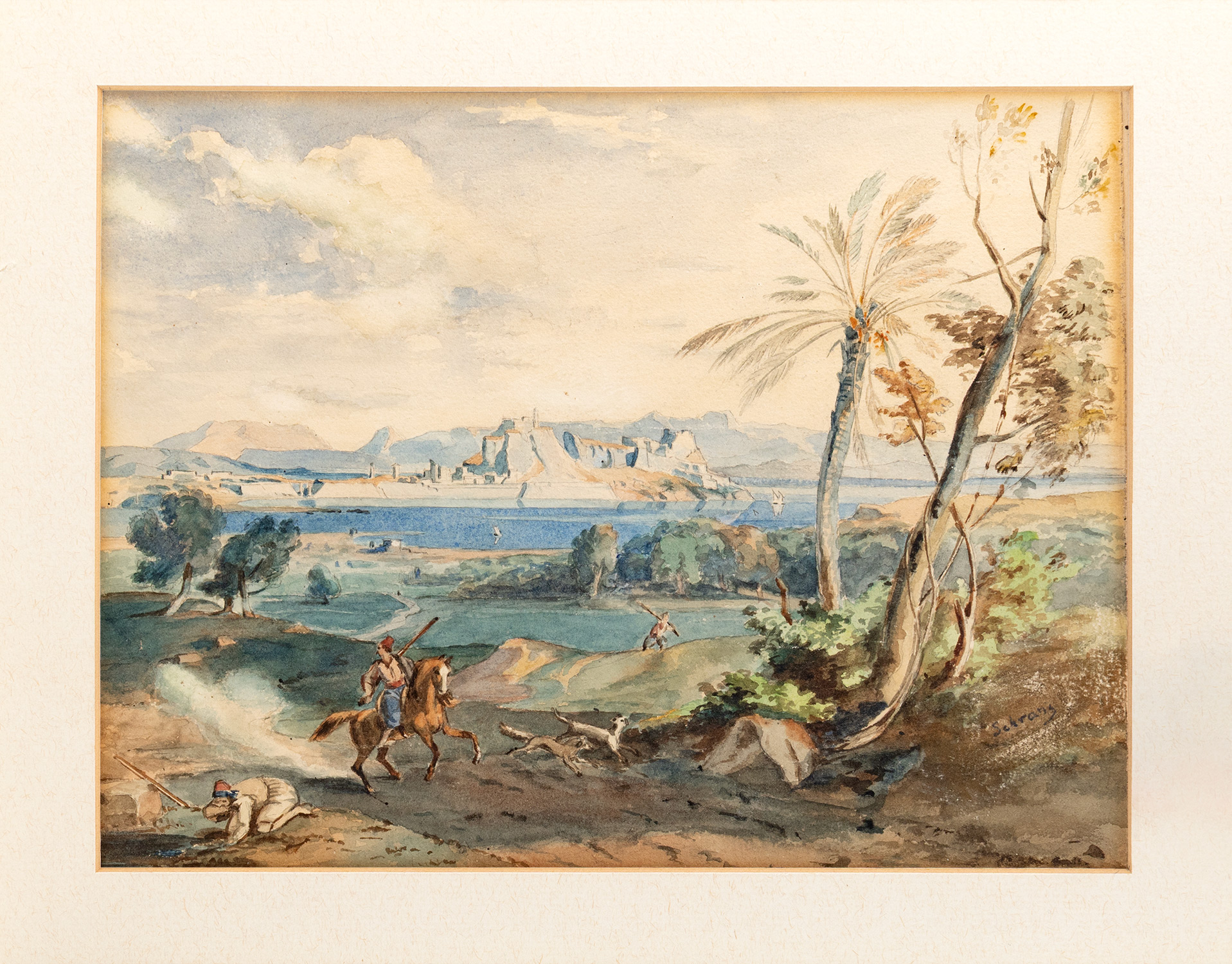 Άποψη της Κέρκυρας με Έλληνα έφιππο