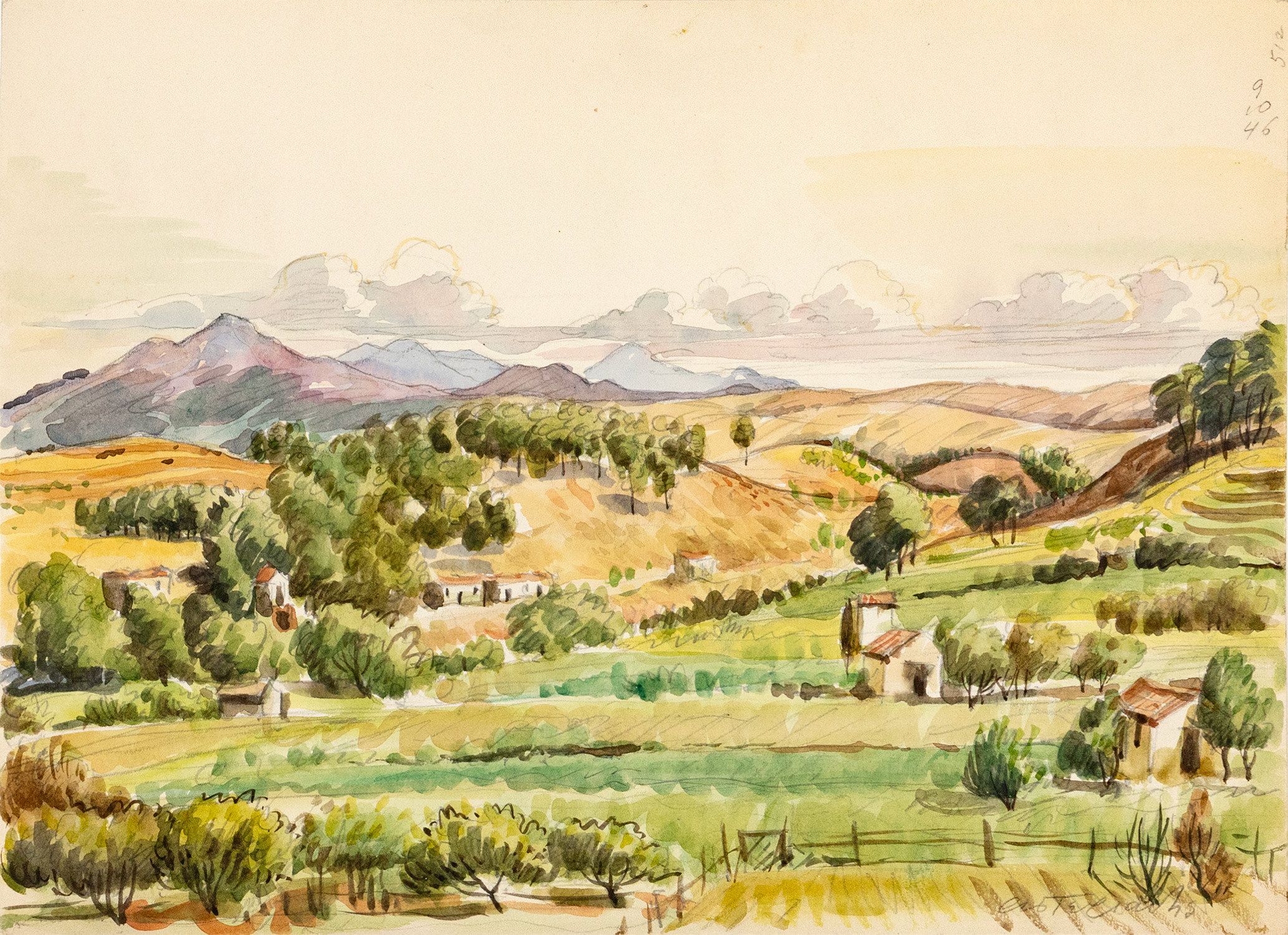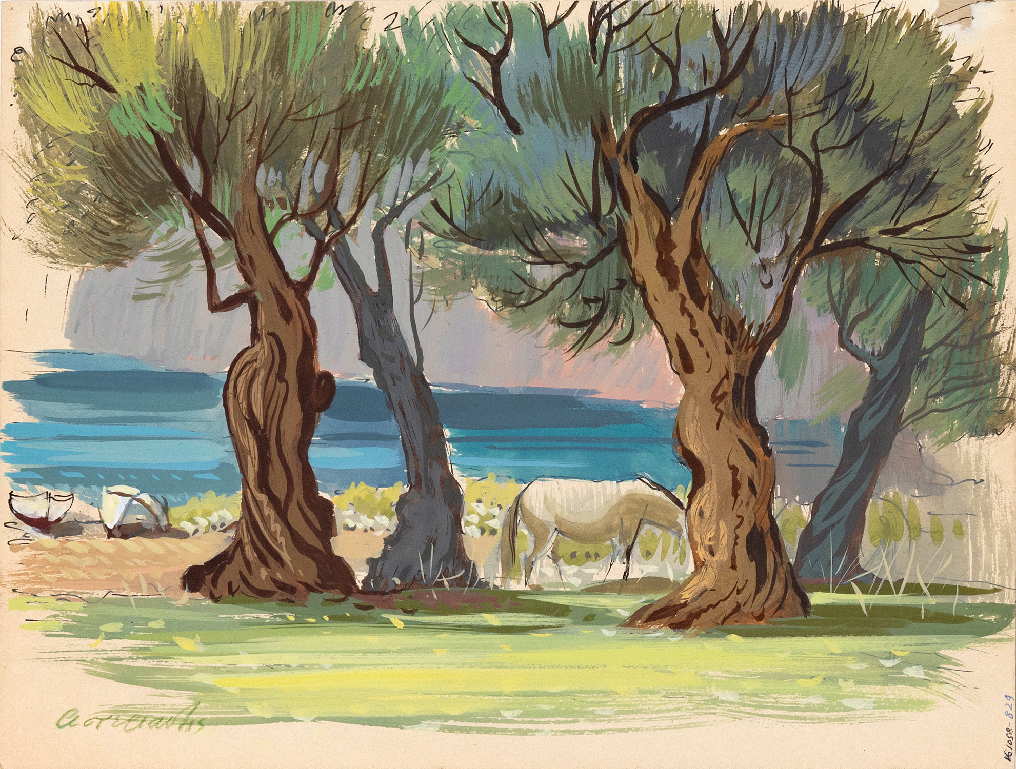 β) υπογεγραμμένο κάτω αριστερά: αστεριάδης υδατογραφία και μολύβι σε χαρτί, 26,5 x 35 εκ.