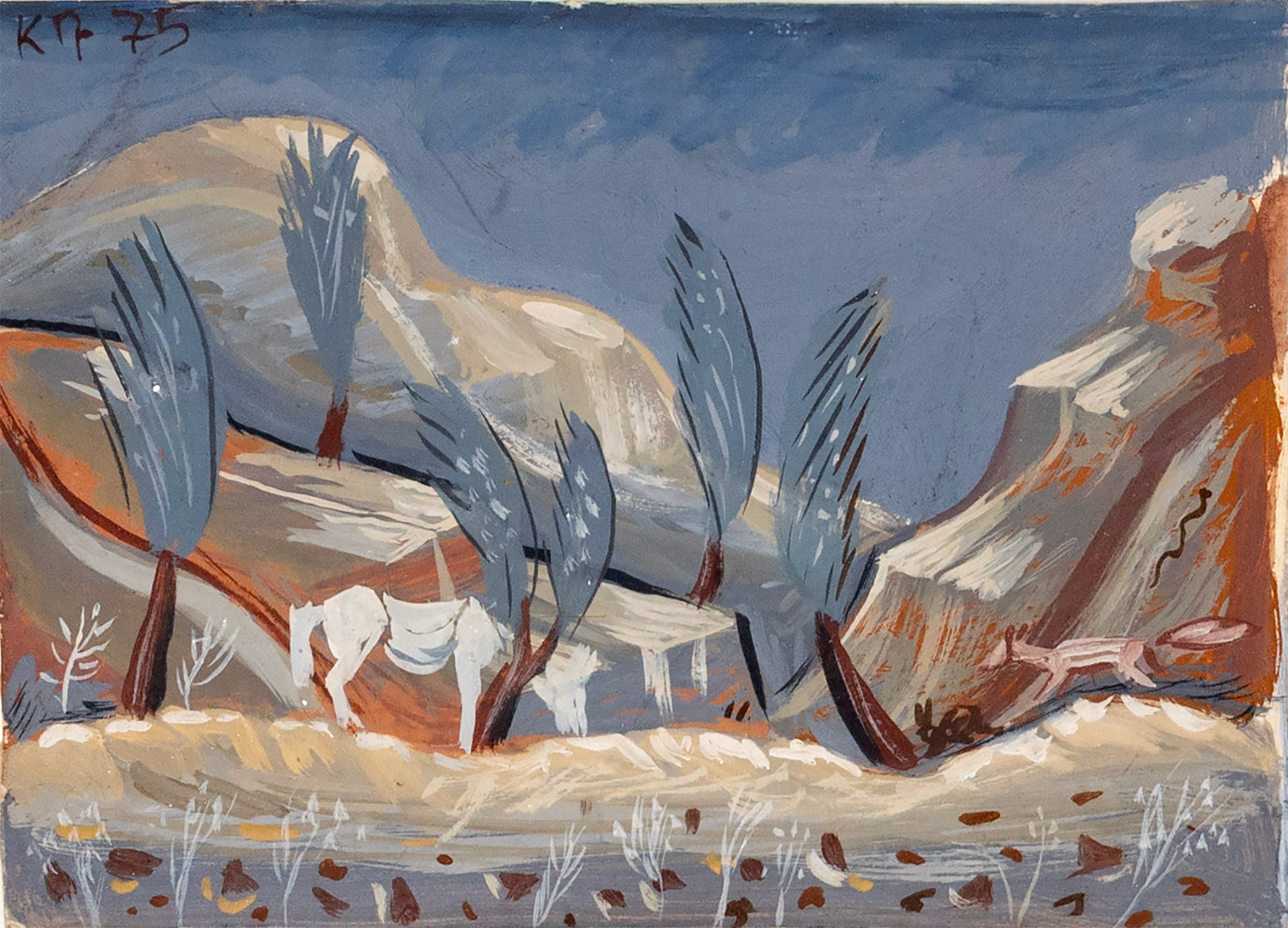 υπογεγραμμένο και χρονολογημένο πάνω αριστερά: Κ.Π. 75
