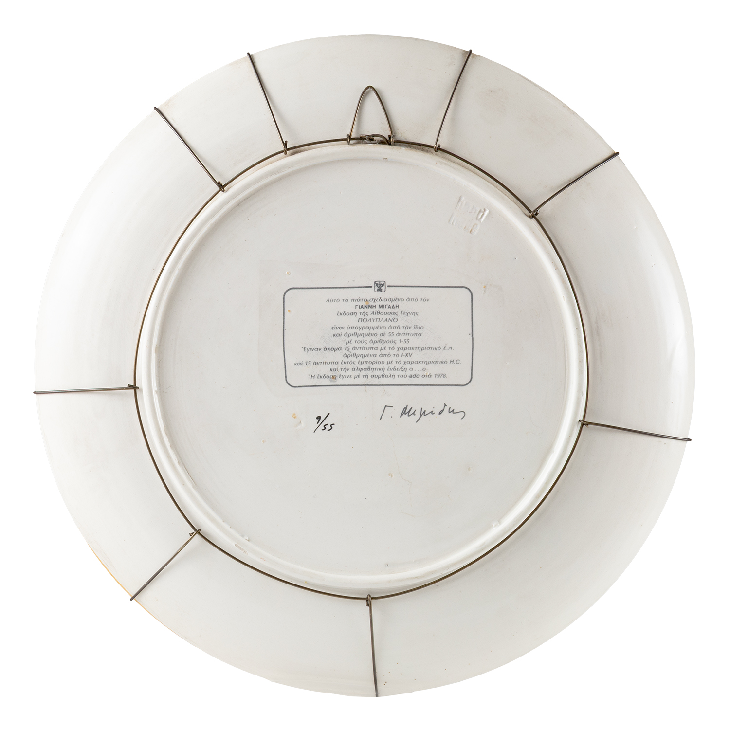 υπογεγραμμένο στα αριστερά: Μιγάδης και αριθμημένο στην πίσω όψη: ΠΟΛΥΠΛΑΝΟ 9/55