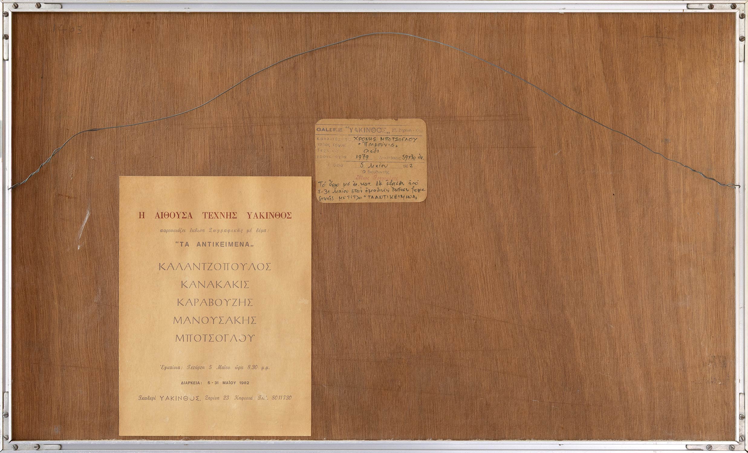 Αντικείμενα, Καλαντζόπουλος, Κανακάκις, Καραβούζης, Μανουσάκης, Μπότσογλου, Αίθουσα Τέχνης Υάκινθος, Αθήνα, Μάιος 1982.