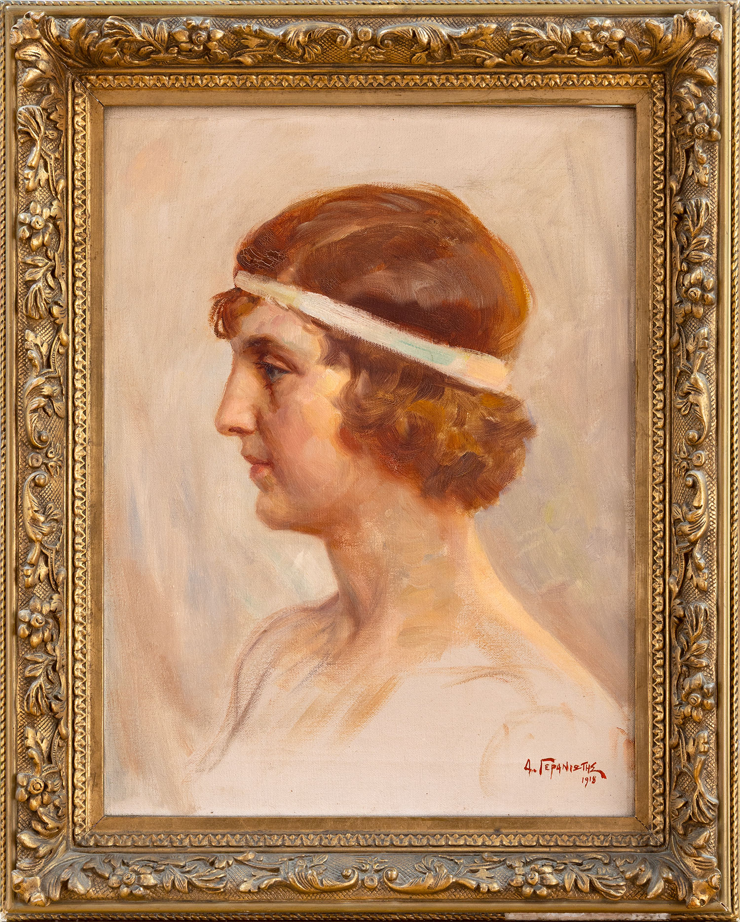 υπογεγραμμένο και χρονολογημένο κάτω δεξιά: Δ. ΓΕΡΑΝΙΩΤΗΣ/1918