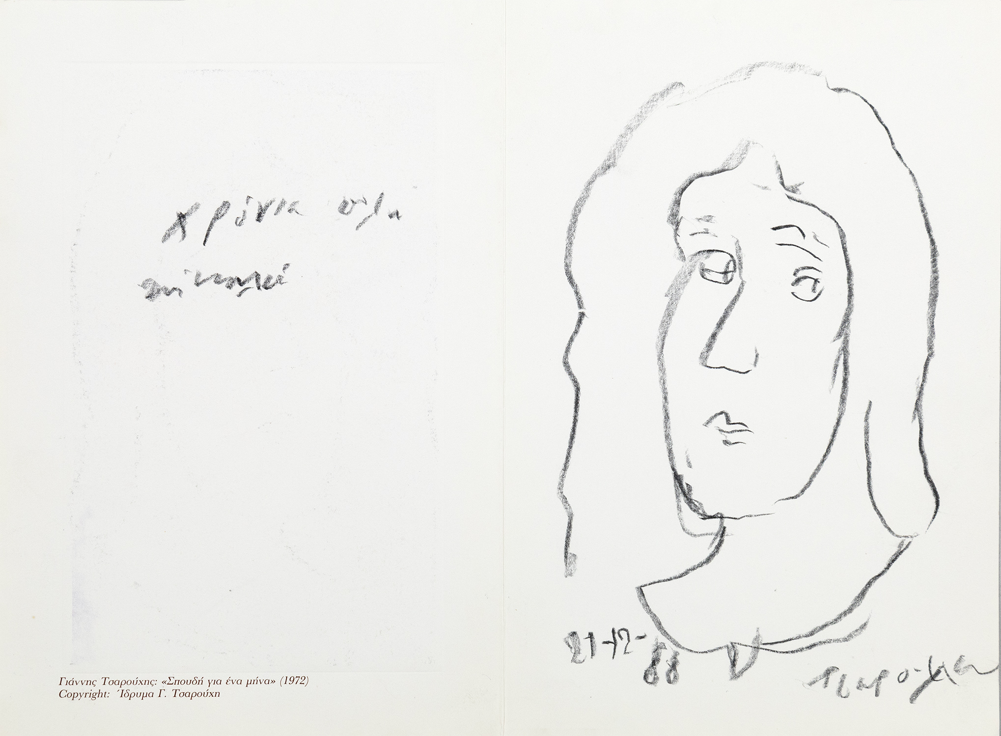 υπογεγραμμένο κάτω δεξιά: Τσαρούχης και χρονολογημένο κάτω αριστερά: 21-12-88 με αφιέρωση στα αριστερά