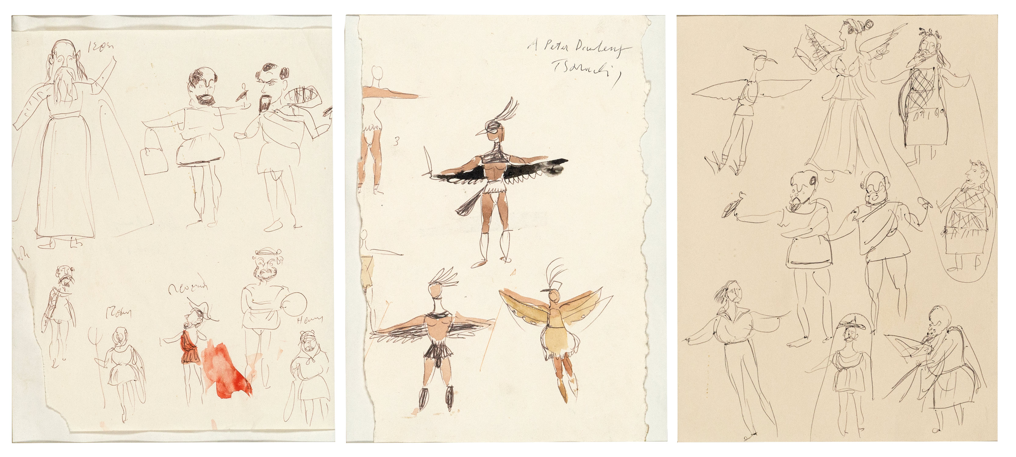 Τρίπτυχο κοστουμιών για τους «Όρνιθες» (Sir Peter Daubeny’s World Theatre, Κάρολος Κουν 1964)