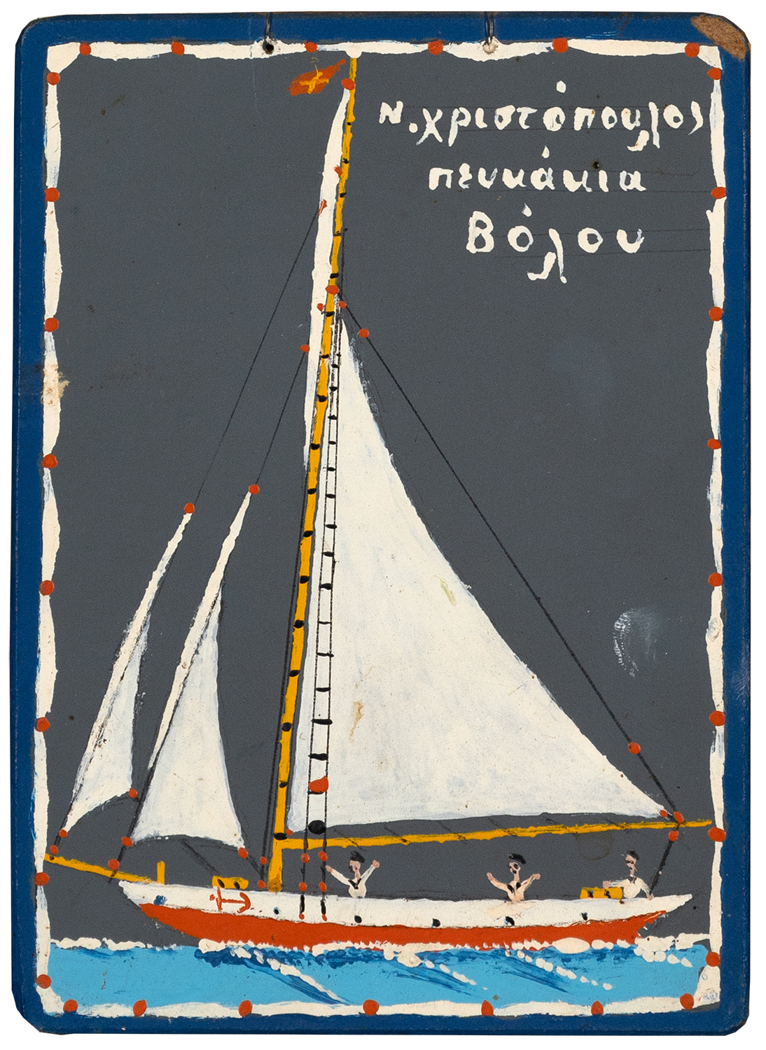 υπογεγραμμένο πάνω δεξιά: Ν. Χριστόπουλος / Πευκάκια/ Βόλου