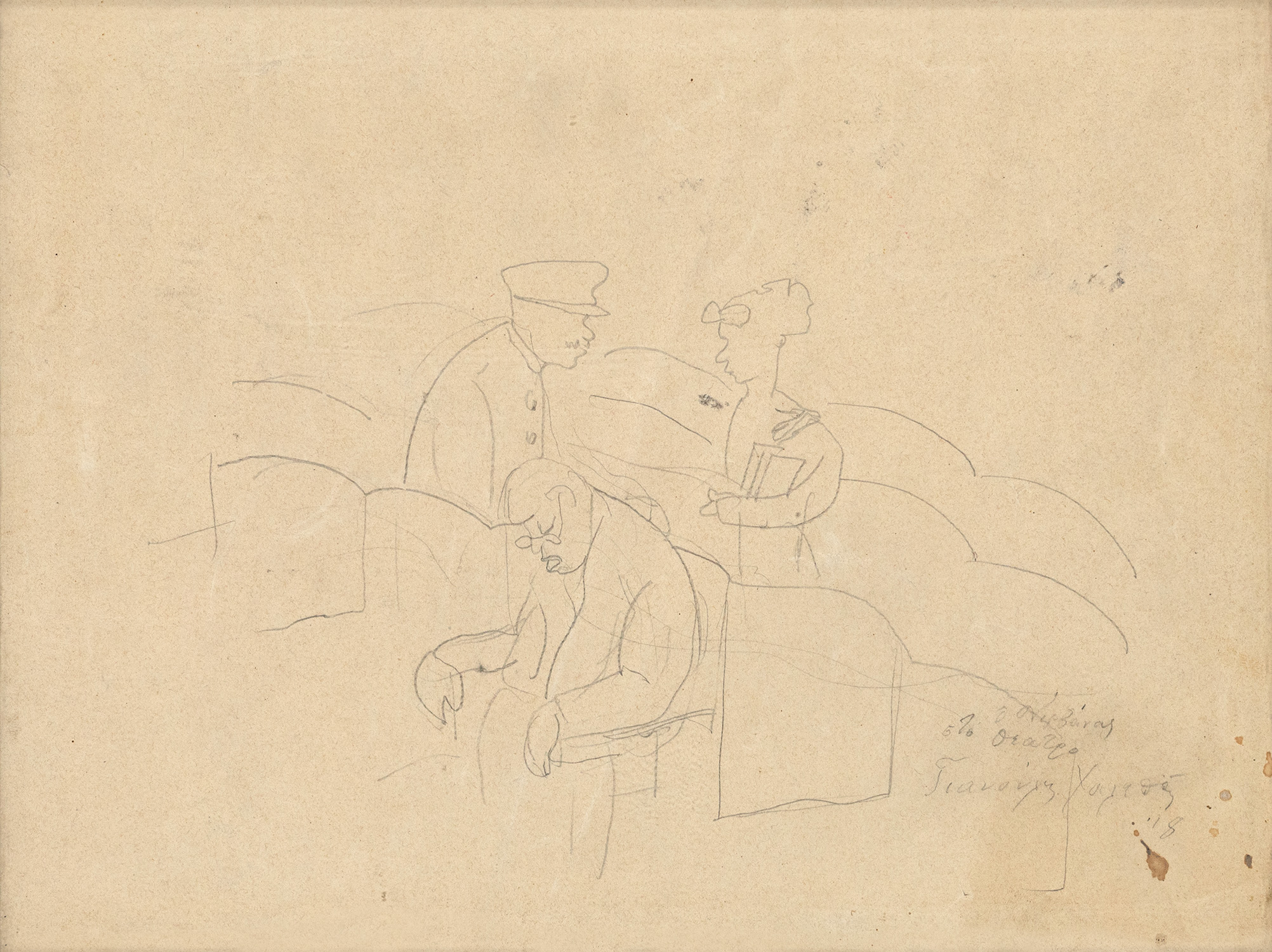 υπογεγραμμένο και χρονολογημένο κάτω δεξιά: Γιαννούλης Χαλεπάς/18 τίτλος κάτω δεξιά