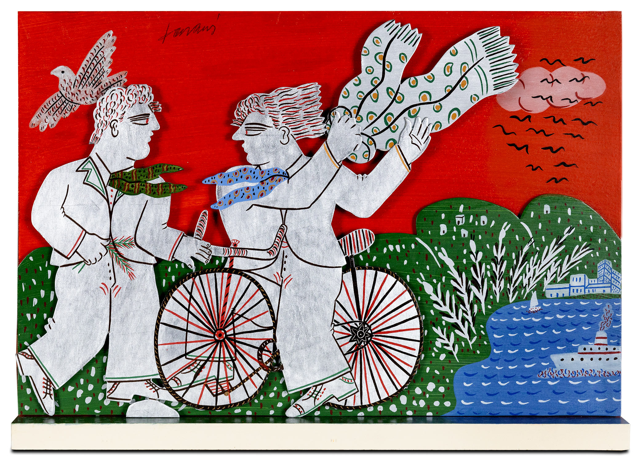 υπογεγραμμένο στο πάνω μέρος: Φασιανός και στην πίσω όψη: Ε.Α. τίτλος στην πίσω όψη 33 x 45 εκ. (με το plexiglass)