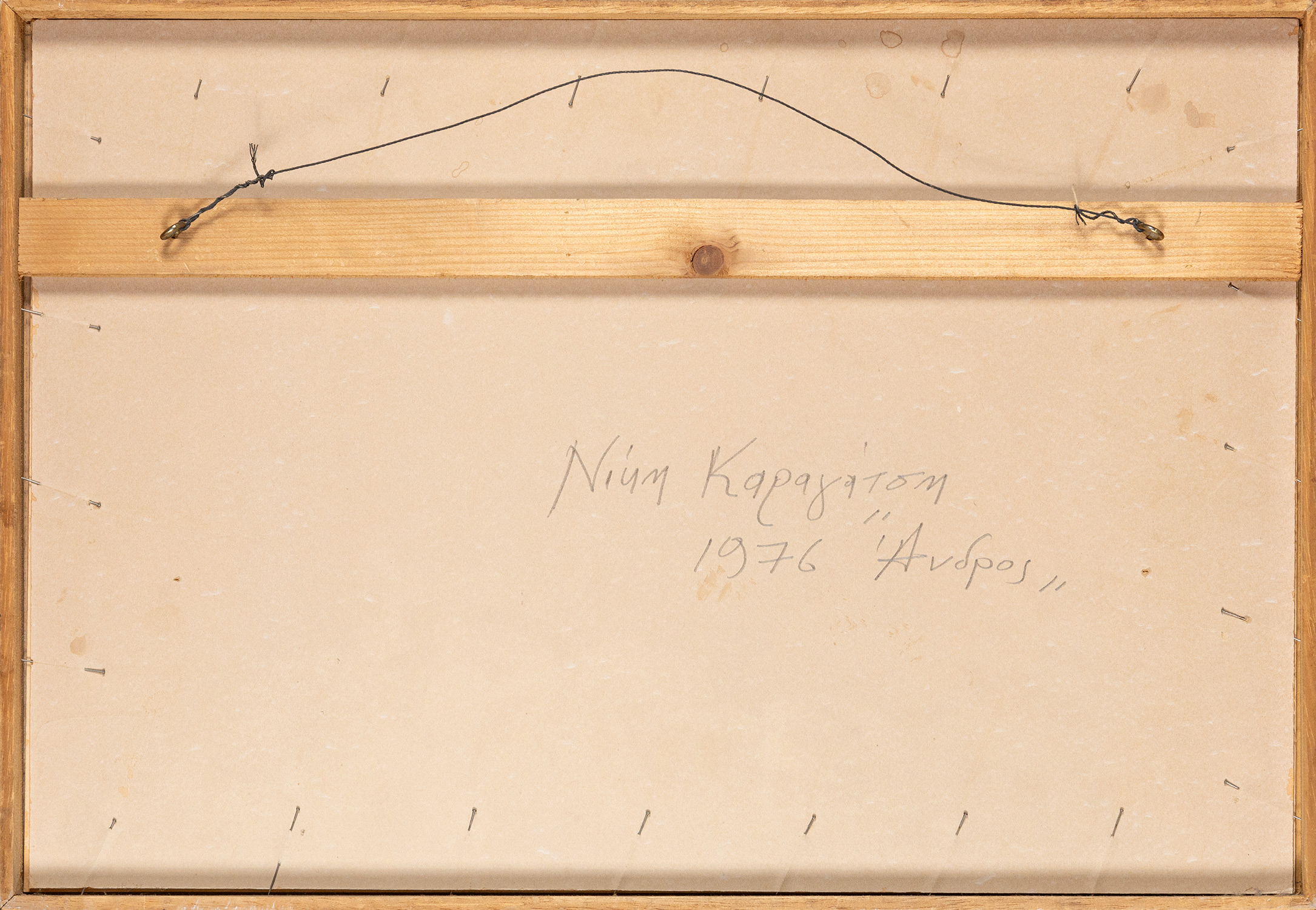 υπογεγραμμένο και χρονολογημένο κάτω δεξιά: ΝΙΚΗ Κ. 1976 Άνδρος τίτλος κάτω δεξιά