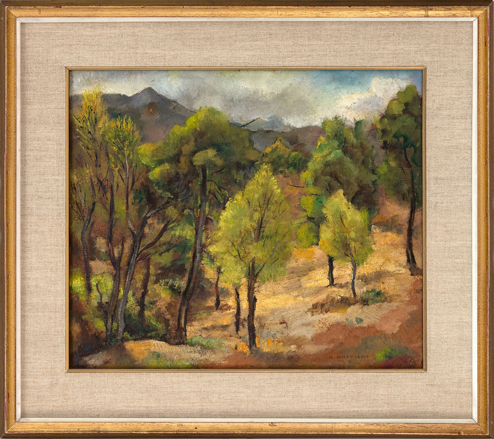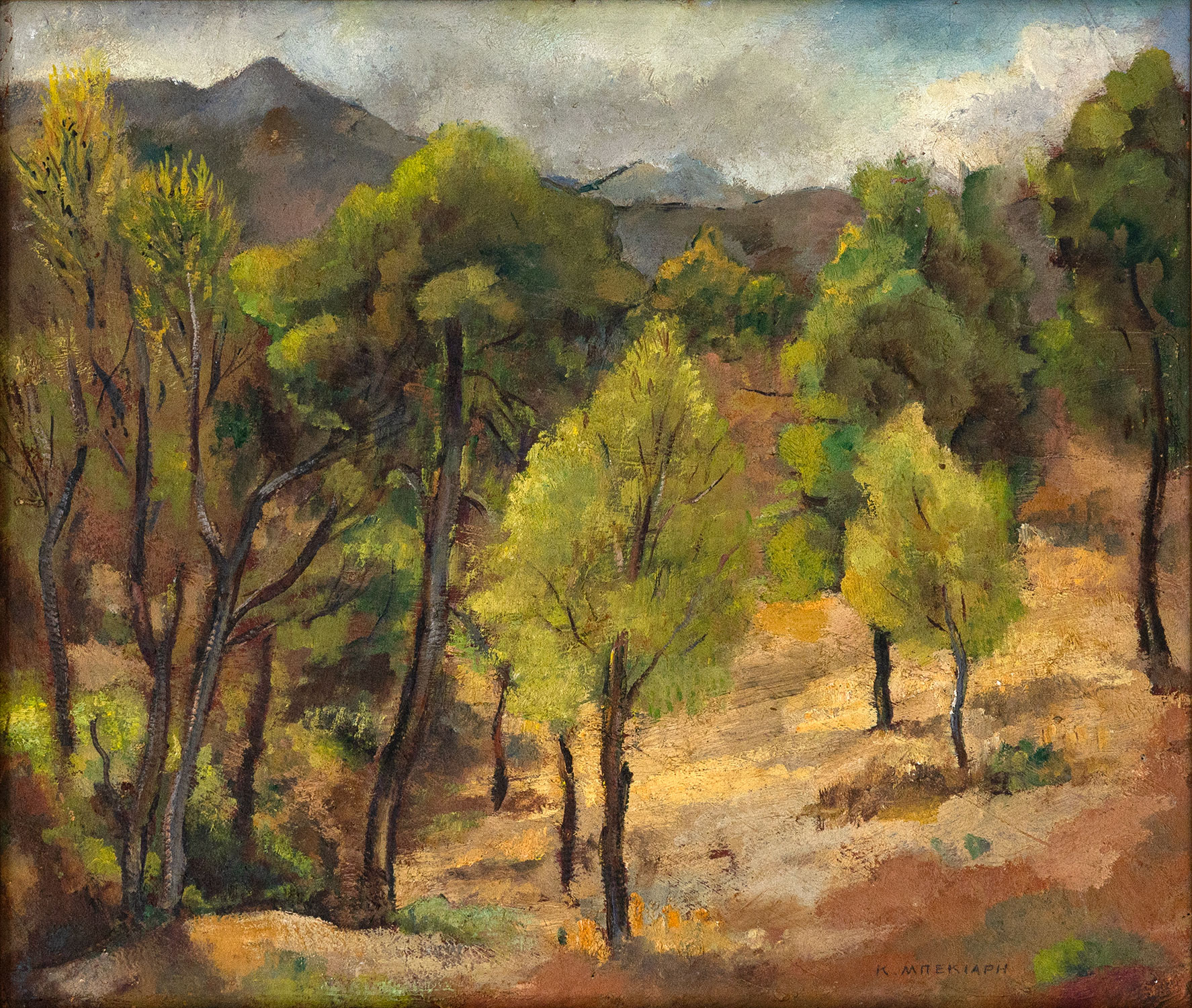 υπογεγραμμένο κάτω δεξιά: Κ. ΜΠΕΚΙΑΡΗ τίτλος σε ετικέτα στην πίσω όψη