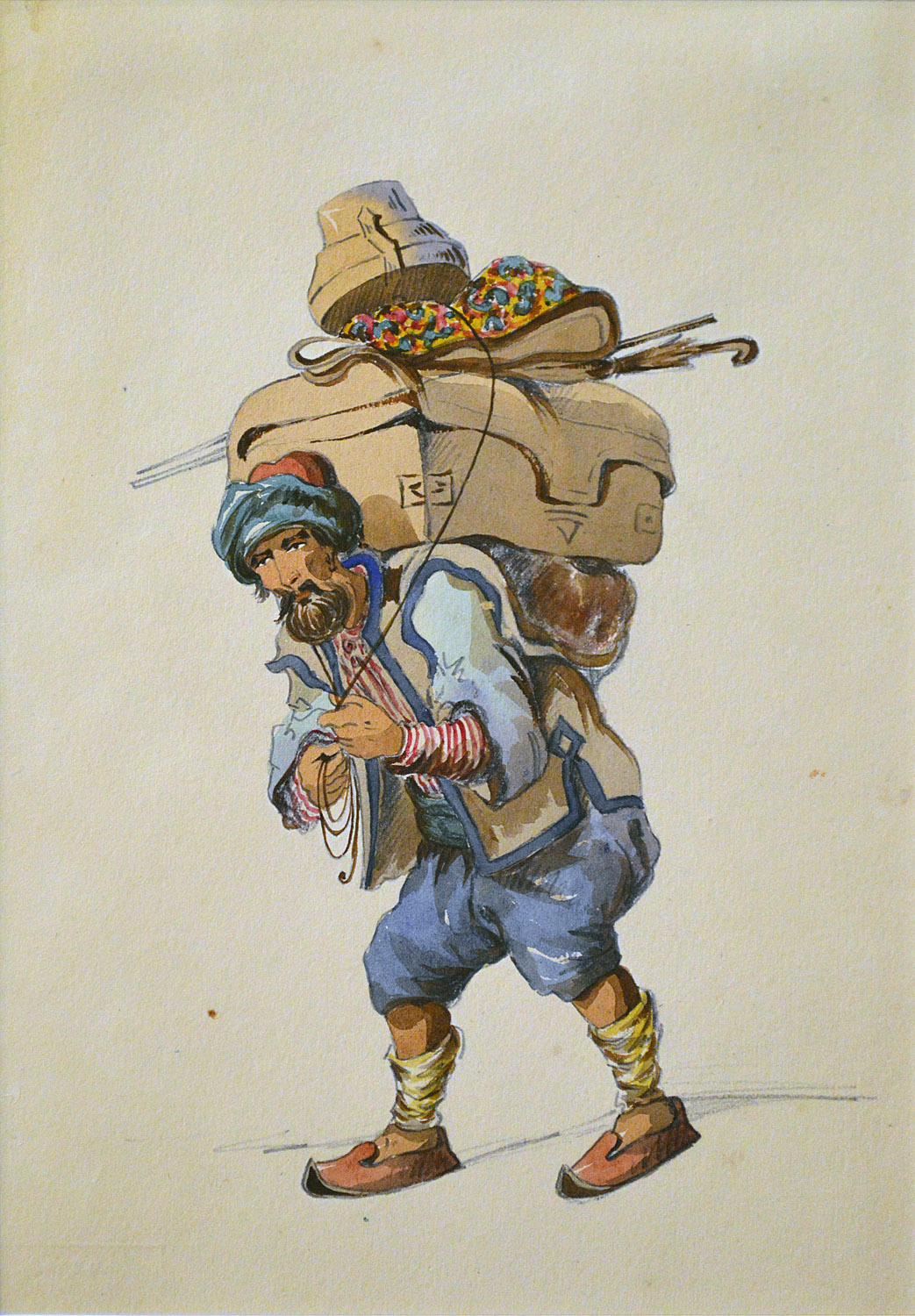 Τιμή εκτίμησης: € 500 - 700Ὑδατογραφία καί μολύβι σέ χαρτί, ἡ καθεμία: 260 x 184 mm. Ὅλες μέ τίτλο στά ἀγγλικά στήν πίσω ὄψη («Turkish Infantry», «Turkish Porter or Hammal» καί «Dervish Tourneur»). (3)