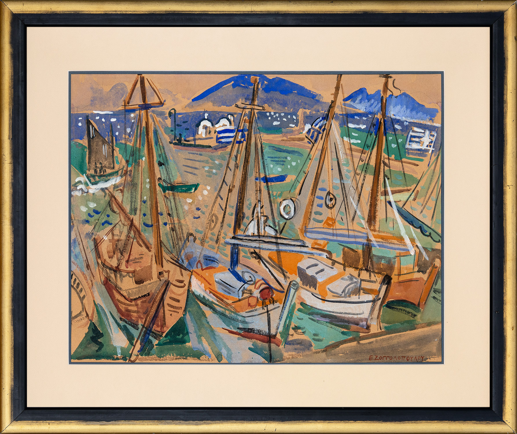 υπογεγραμμένο κάτω δεξιά: Ε. ΖΟΓΓΟΛΟΠΟΥΛΟΥ τίτλος και χρονολογία σε ετικέτα στην πίσω όψη