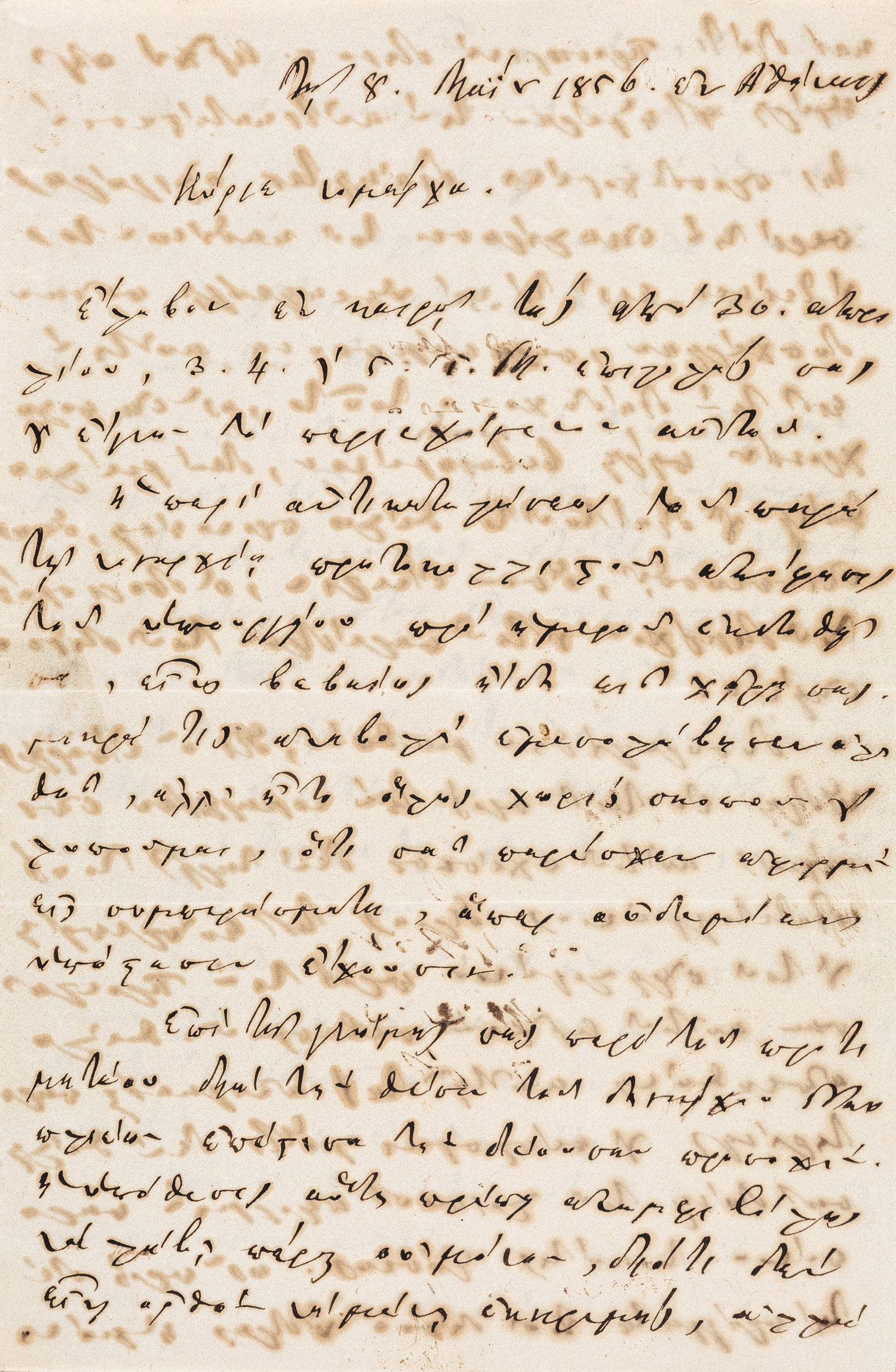 Αὐτόγραφη ἐπιστολή μέ τήν ὑπογραφή του («Δ. Γ. Βούλγαρης») πρός τόν νομάρχη Ἀργολίδας Ἡλία Παπαηλιόπουλο.