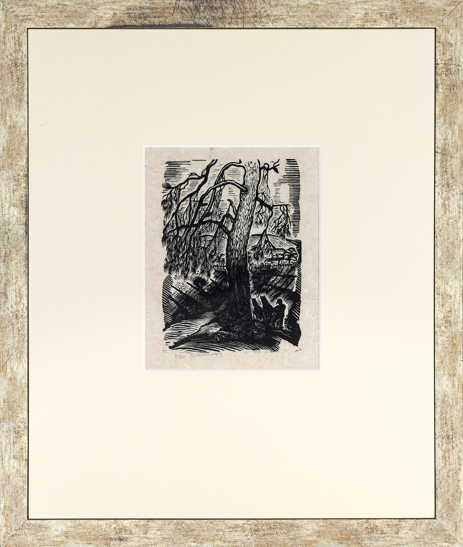 Ξυλογραφία σε όρθιο ξύλο, 200 x 150 mm. Έκδοση σε 20 αντίτυπα, αρίθμηση και υπογραφή στο κάτω περιθώριο με μολύβι. Σε κορνίζα.