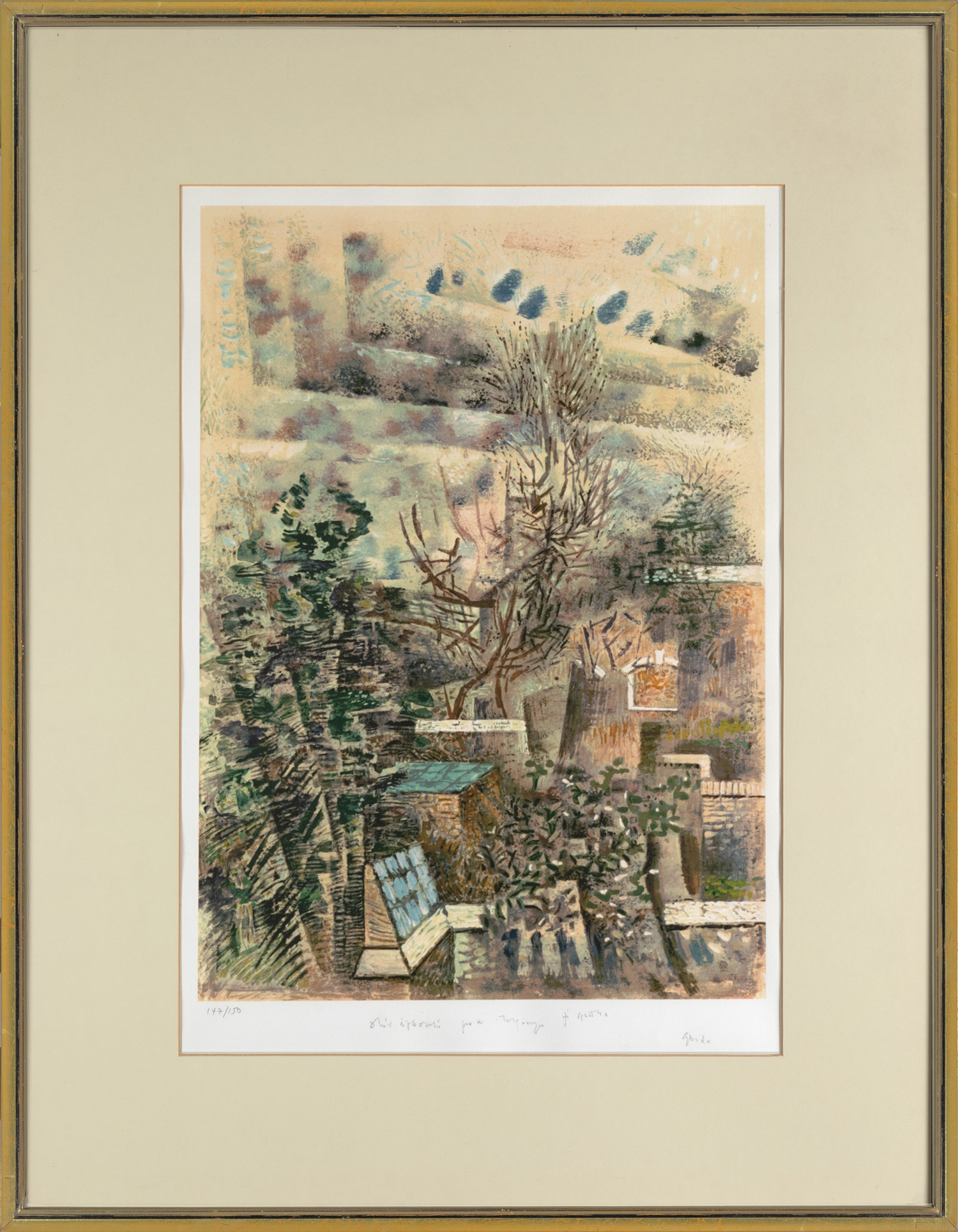 Μεταξοτυπία, 490 x 347 mm. Έκδοση σε 150 αντίτυπα, αρίθμηση, αφιέρωση («στόν ἀγαπητό μου κ. Τσιρόπουλο») και υπογραφή στο κάτω περιθώριο με μολύβι. Σε κορνίζα.