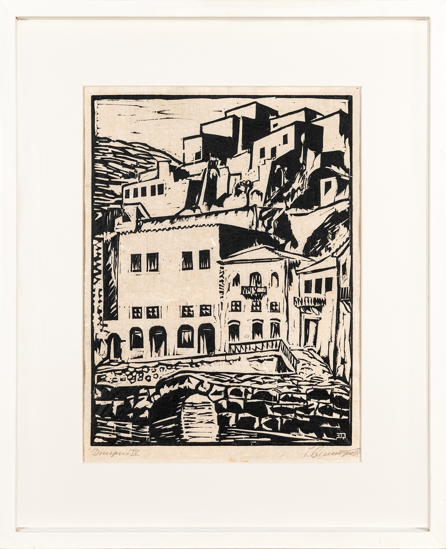 Ξυλογραφία σε πλάγιο ξύλο, 315 x 235 mm. Η ένδειξη «Δοκιμή IV» και υπογραφή στο κάτω περιθώριο με μολύβι, υπογραφή με αρχικά στην πλάκα. Σε κορνίζα.