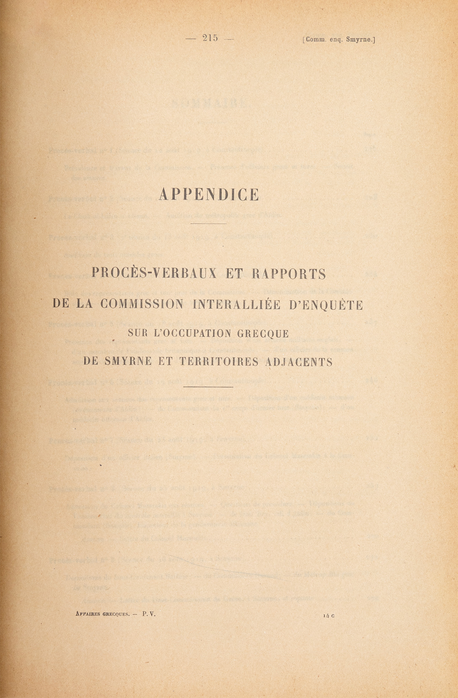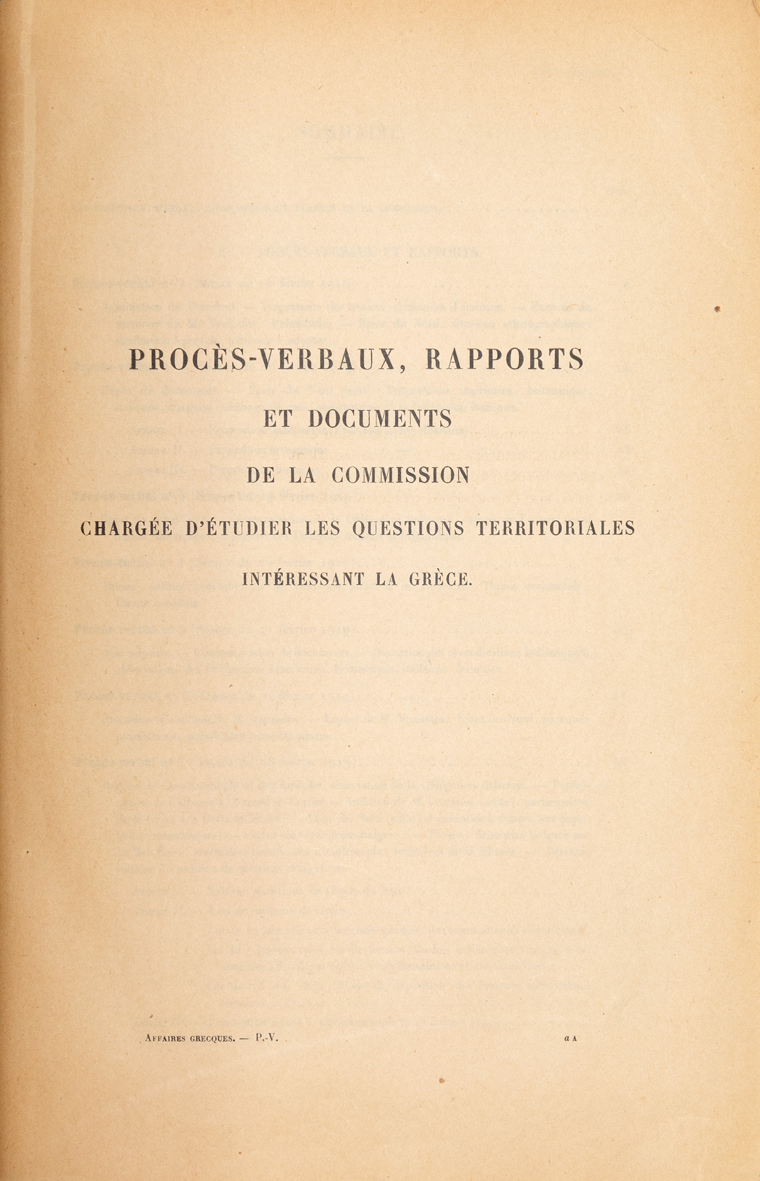 Conférence de la Paix 1919-1920. Recueil des actes de la Conférence. Partie IV: Commissions de la Conférence. C: Questions territoriales. (5): Commission chargée d’étudier les questions territoriales intéressant la Grèce.