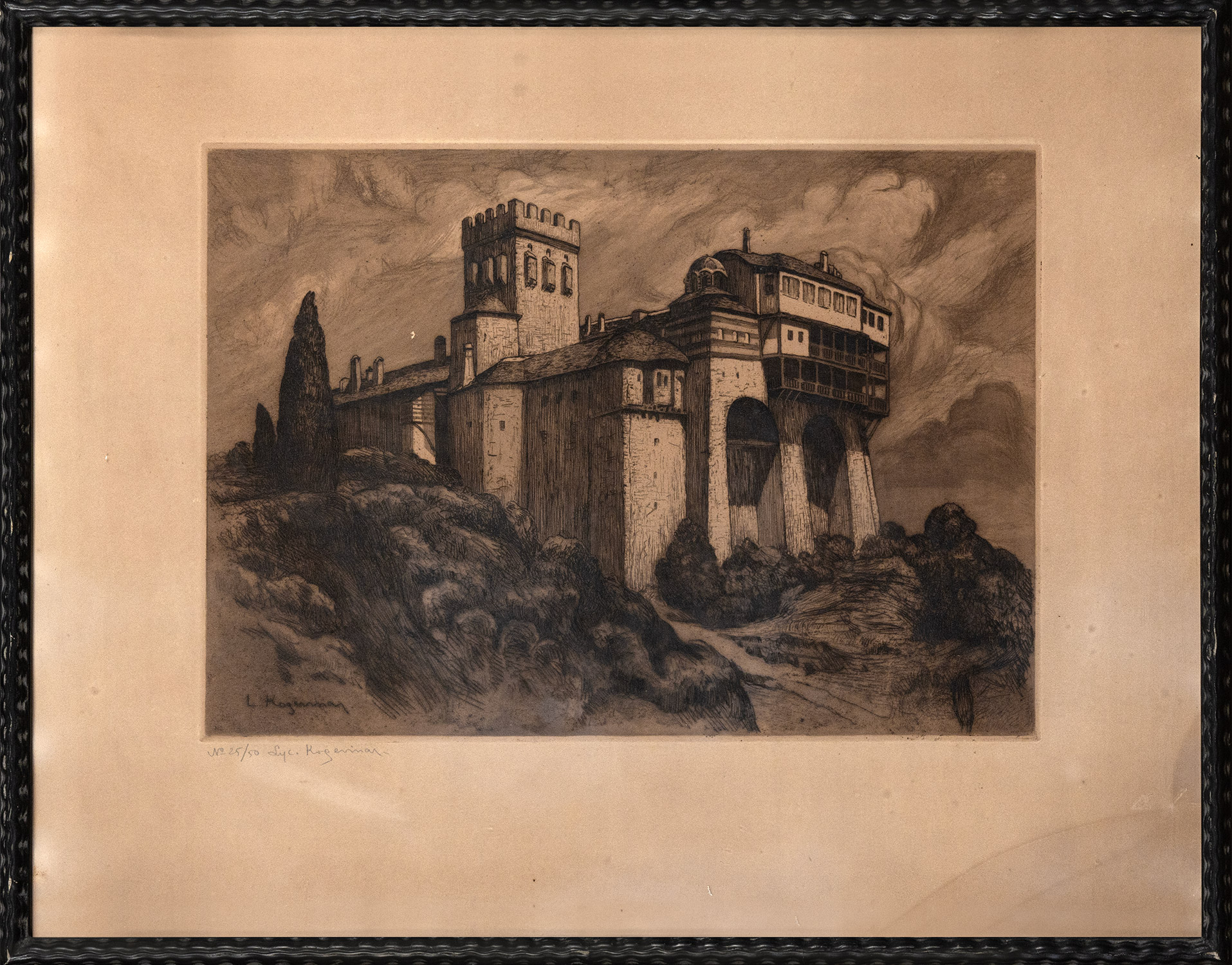 Οξυγραφία και ακουατίντα, 302 x 432 mm. Έκδοση σε 50 αντίτυπα, αρίθμηση και υπογραφή στο κάτω περιθώριο με μολύβι, υπογραφή στην πλάκα. Σε κορνίζα. Κούρια & Οράτη, 113.