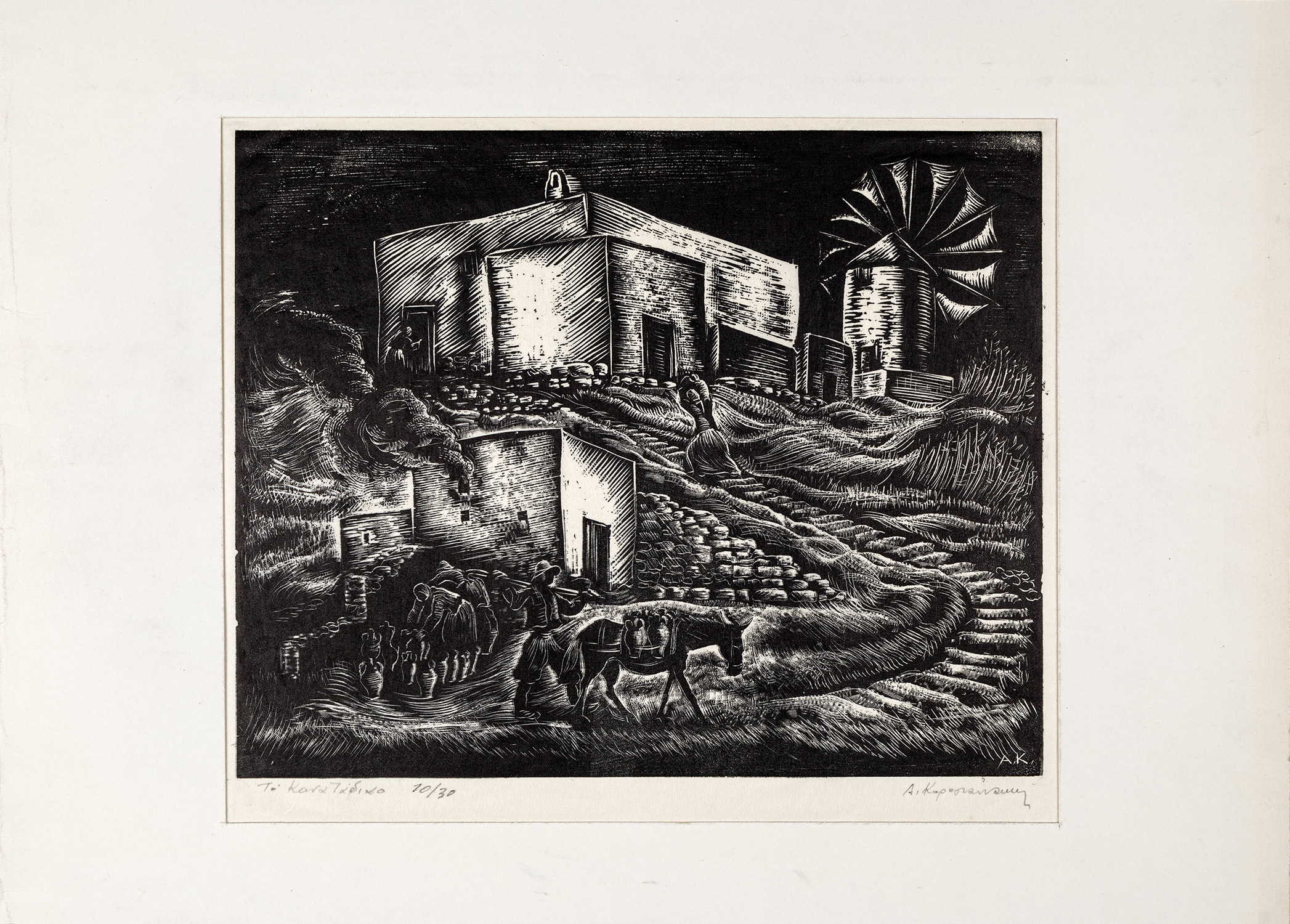 Τιμή εκτίμησης: € 500 - 700Ξυλογραφία σε όρθιο ξύλο, 247 x 311 mm. Έκδοση σε 30 αντίτυπα, τίτλος, αρίθμηση και υπογραφή στο κάτω περιθώριο με μολύβι, υπογραφή με αρχικά στην πλάκα. Σε πασπαρτού. • Βλ. Ἑλληνική χαρακτική, [κατάλ. της Α´ Πανελ. Έκθεσης Χαρακτικής], Αθήνα 1938, αρ. 130.