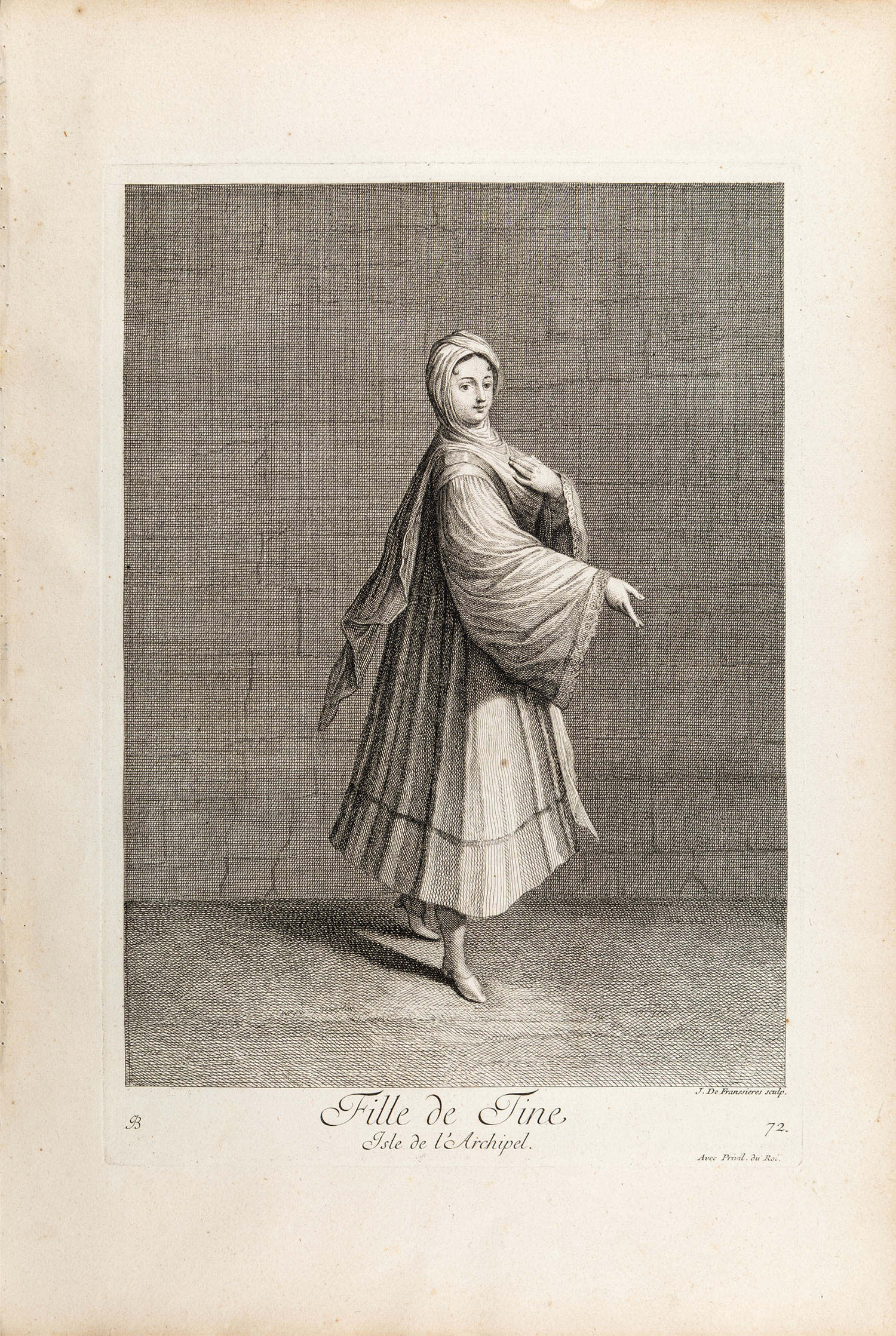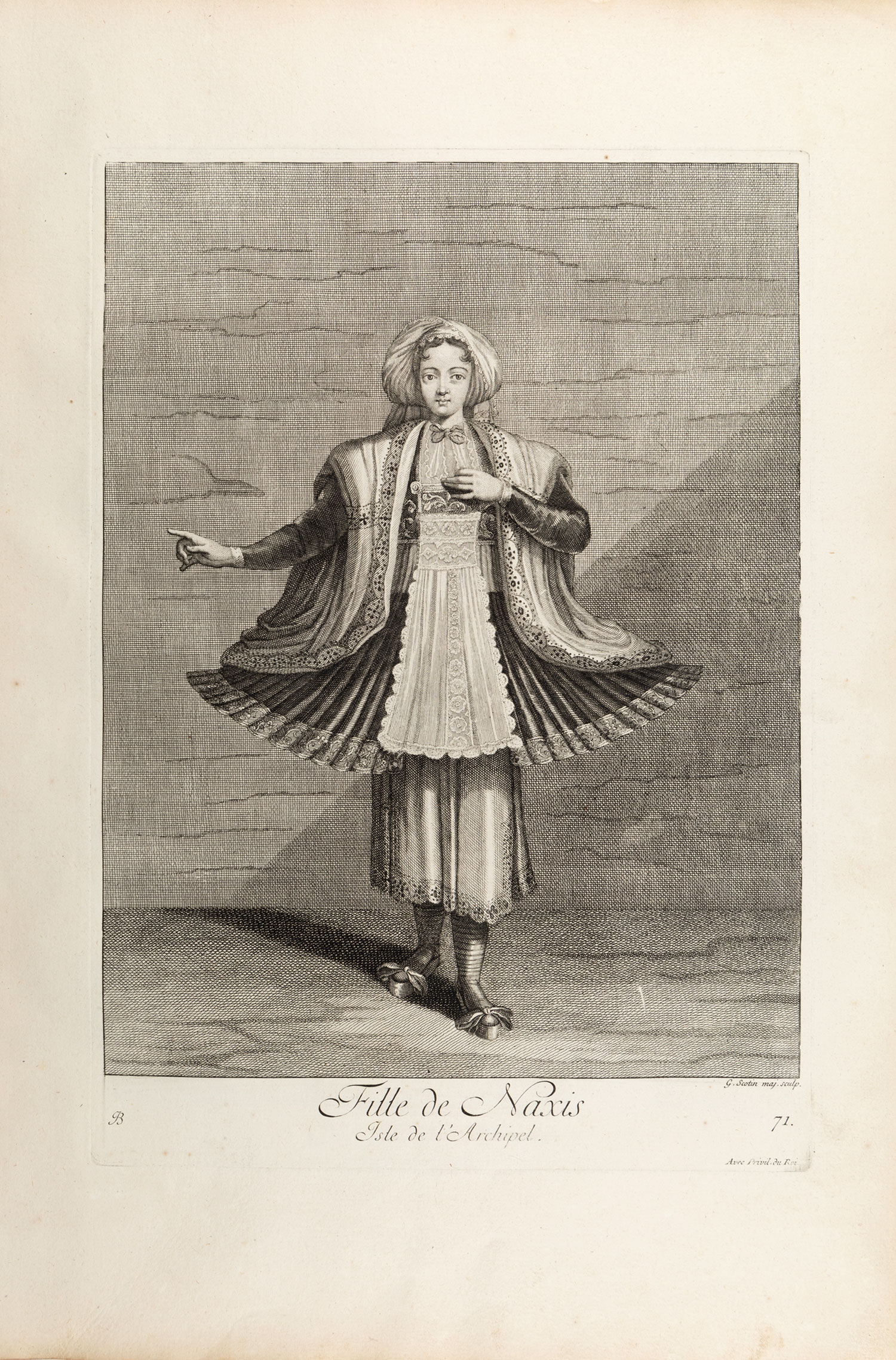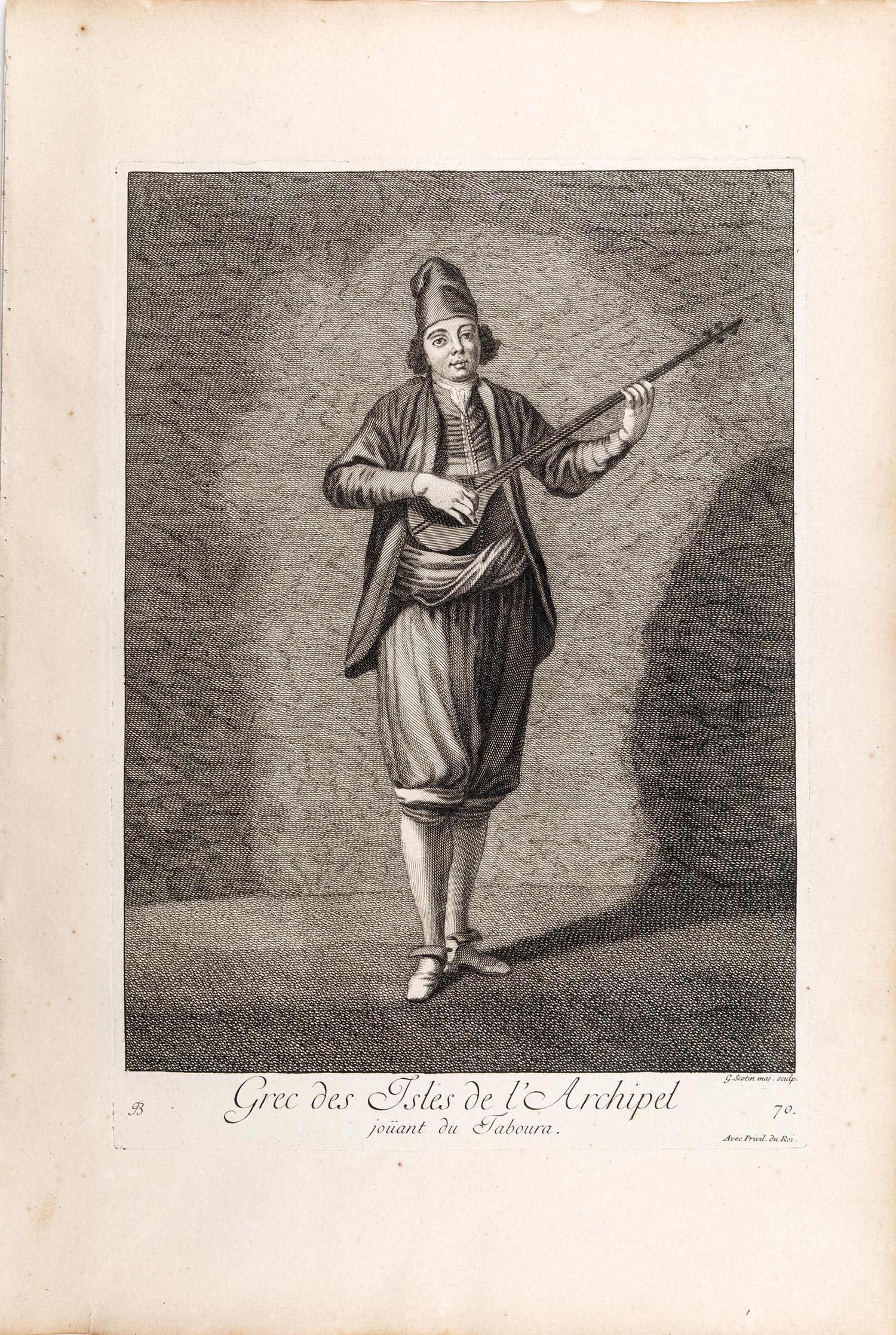Ἐνενήντα ἐννέα χαλκογραφίες ἀπό τό «Recueil de cent estampes representant differentes nations du Levant, tirées sur les tableaux peints d’après nature en 1707 et 1708 par les ordres de M. de Ferriol, Ambassadeur du Roi à la Porte, et gravées en 1712 et 1713 par les soins de M. Le Hay».